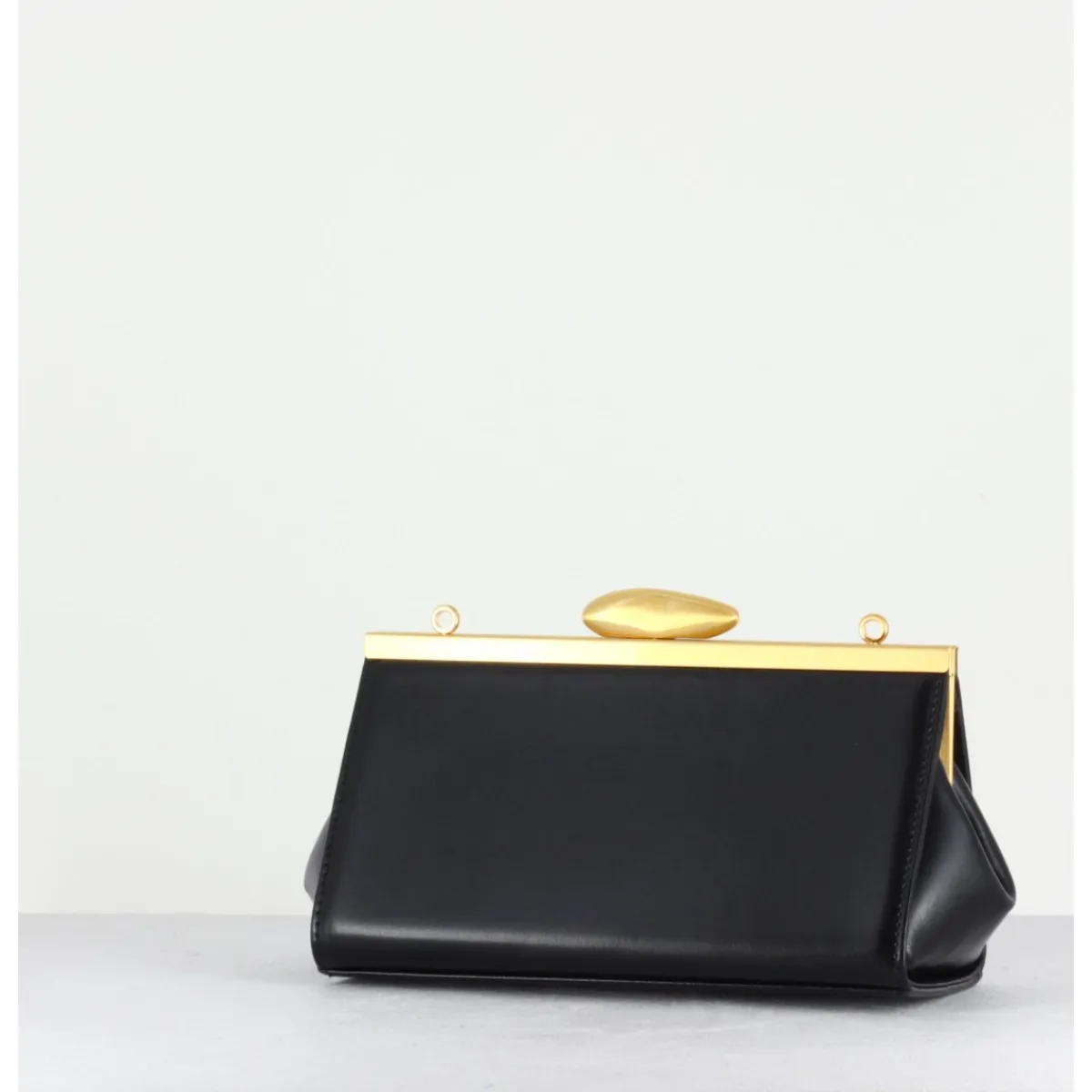 Petit sac sculptural en cuir noir au design rectangulaire, intérieur entièrement doublé qui possède assez d’espace pour transporter le nécessaire sans se sentir encombré! Se porte en bandoulière ou en élégante pochette sous le bras. Fabriqué à la main en Corée dans les Ateliers de la Maison Reike Nen.