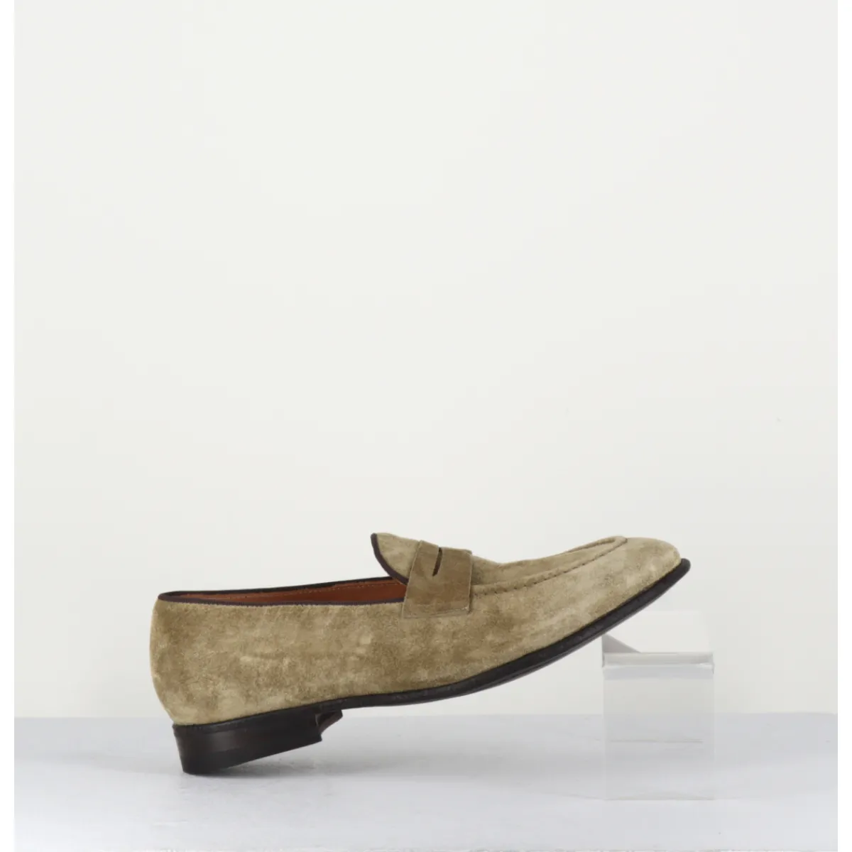 Mocassins plats en veau velours extrêmement souple, montés sur une semelle cousue main fabrication sacchetto qui assure une extrême flexibilité