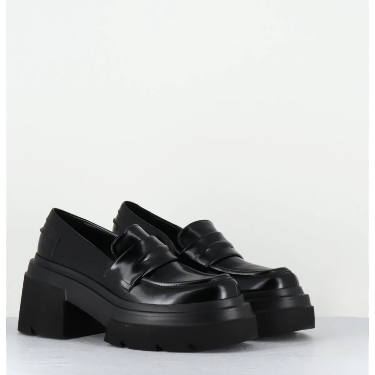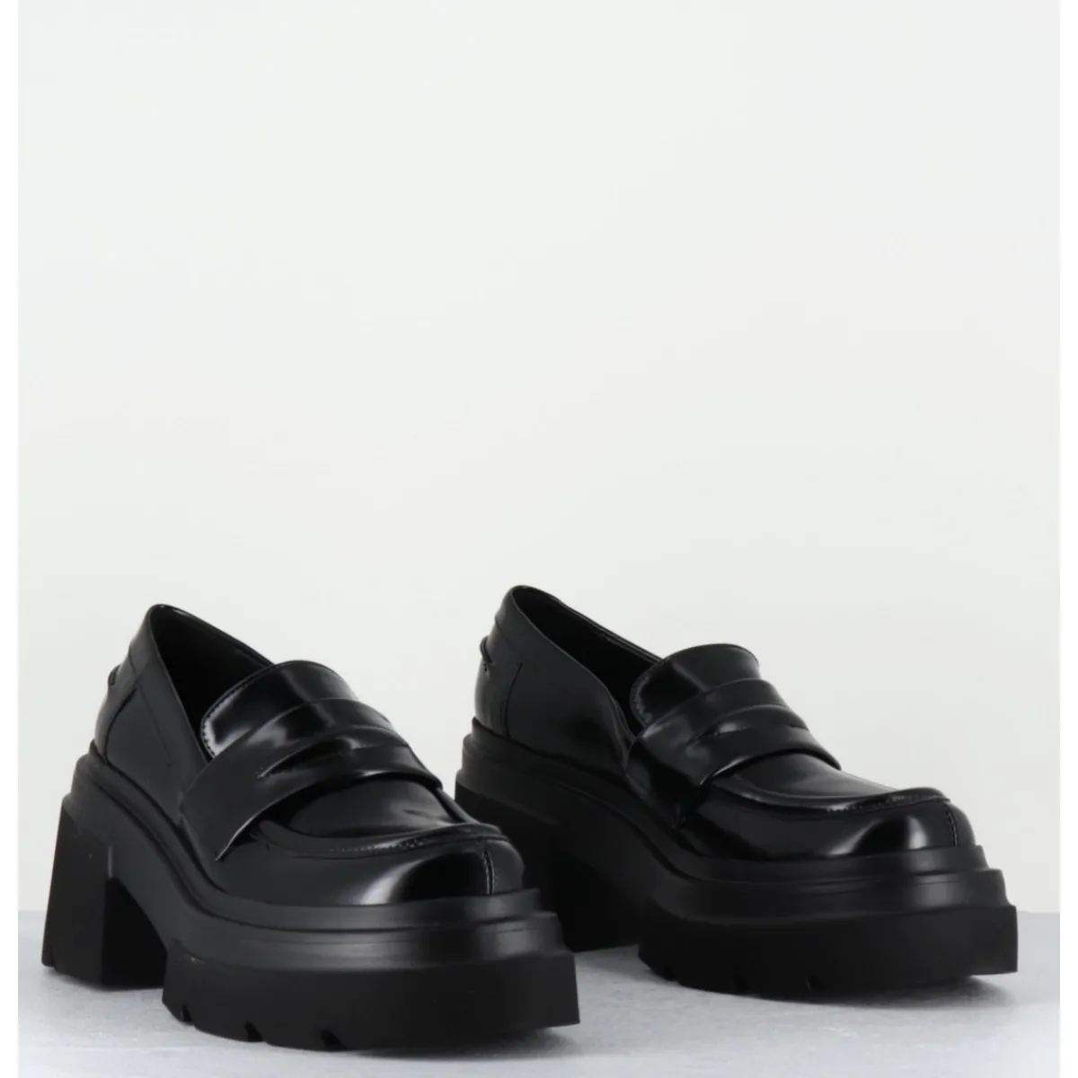 Mocassins effet glacé noir, bout arrondi, montées sur une semelle chunky ultra légère esprit années 90
