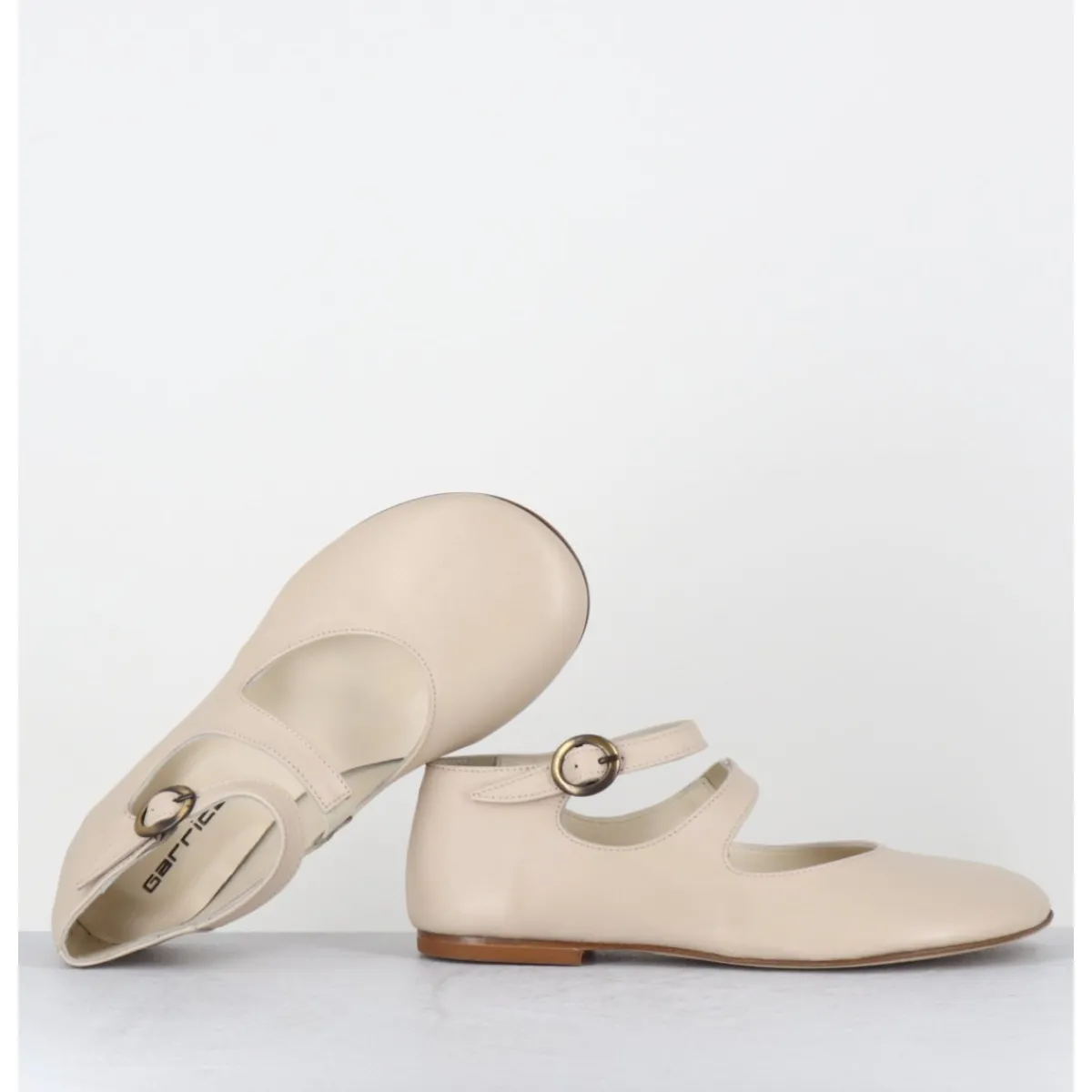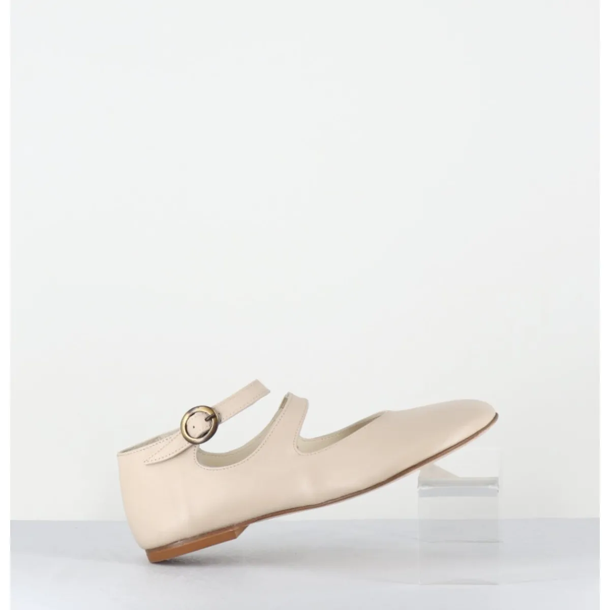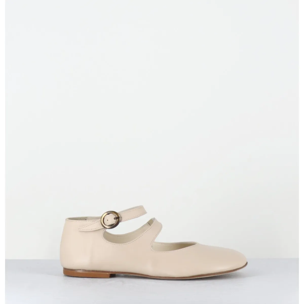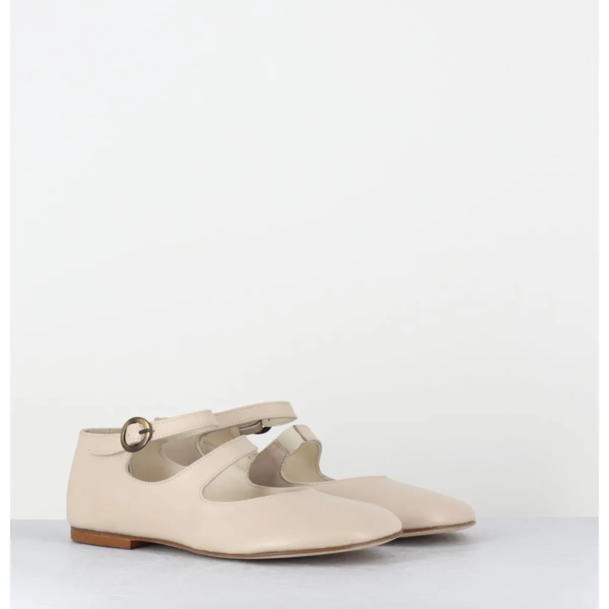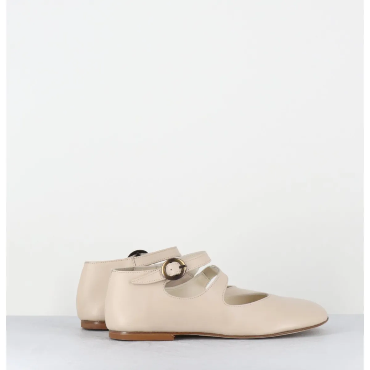 Ballerines – babies double bride et petite boucle réglable en cuir souple beige clair, forme ronde minimaliste au style japonisant
