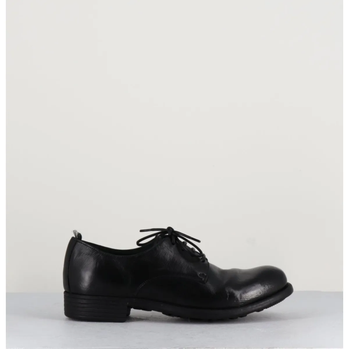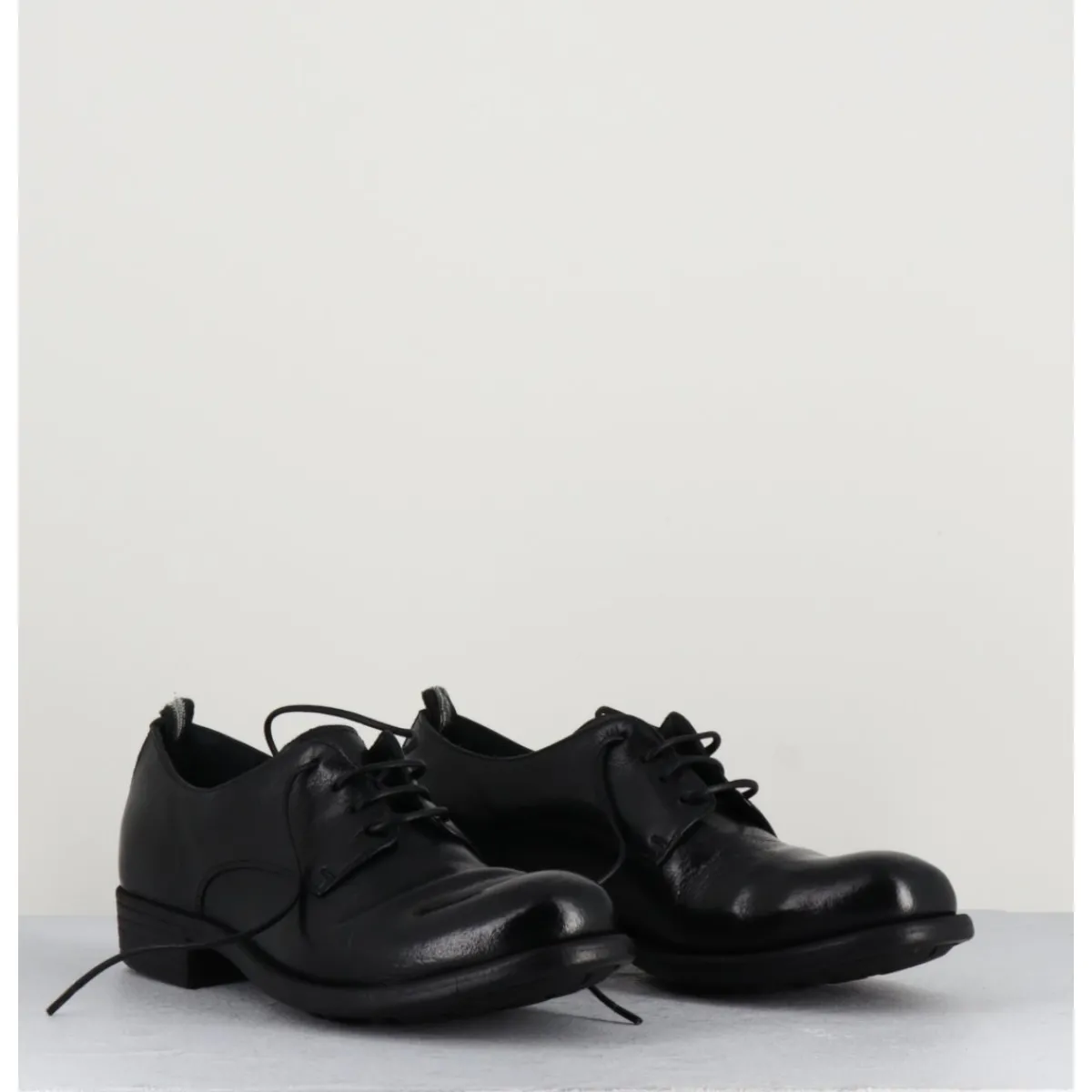 Derbies à lacets en cuir noir, construction Sacchetto extrêmement souple, avec insert de gomme, cousu main.