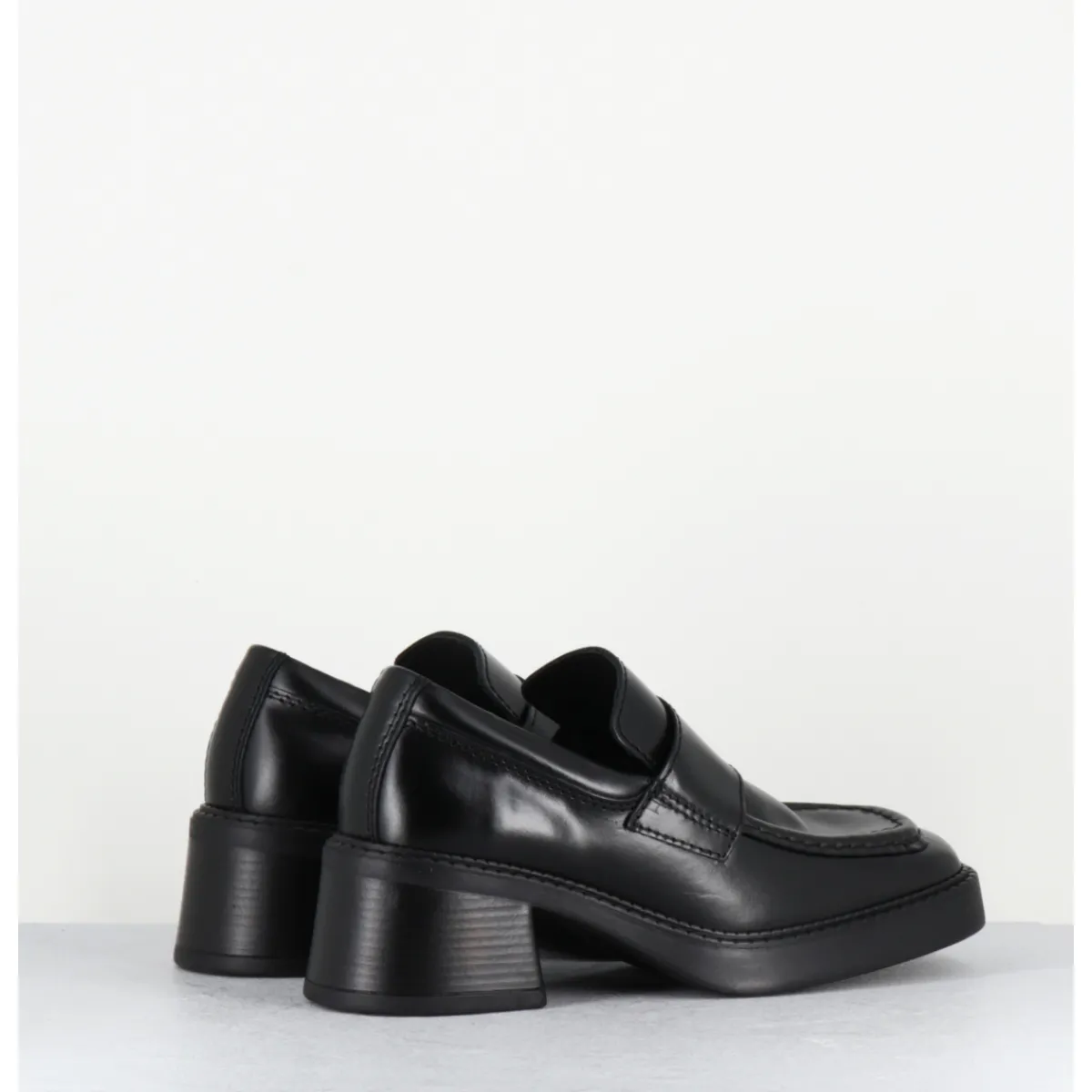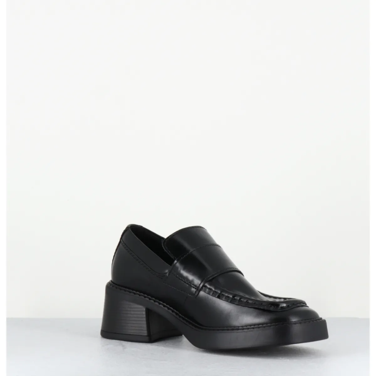 Mocassins en cuir noir bout carré esprit années 90, talon et semelle en gomme