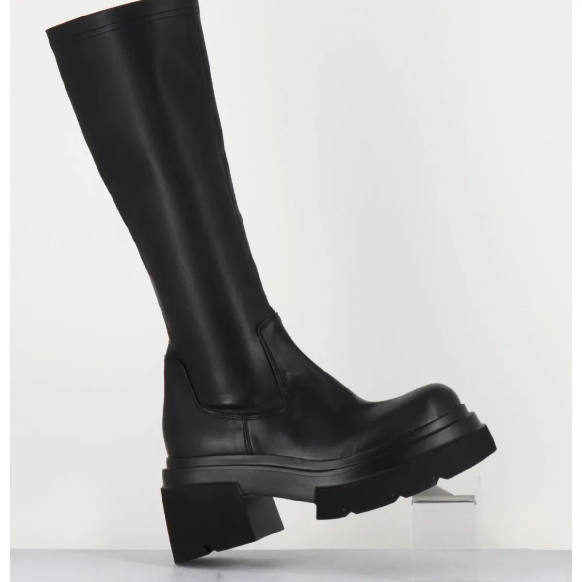 Bottes en cuir stretch bout arrondi, montées sur une semelle chunky ultra légère