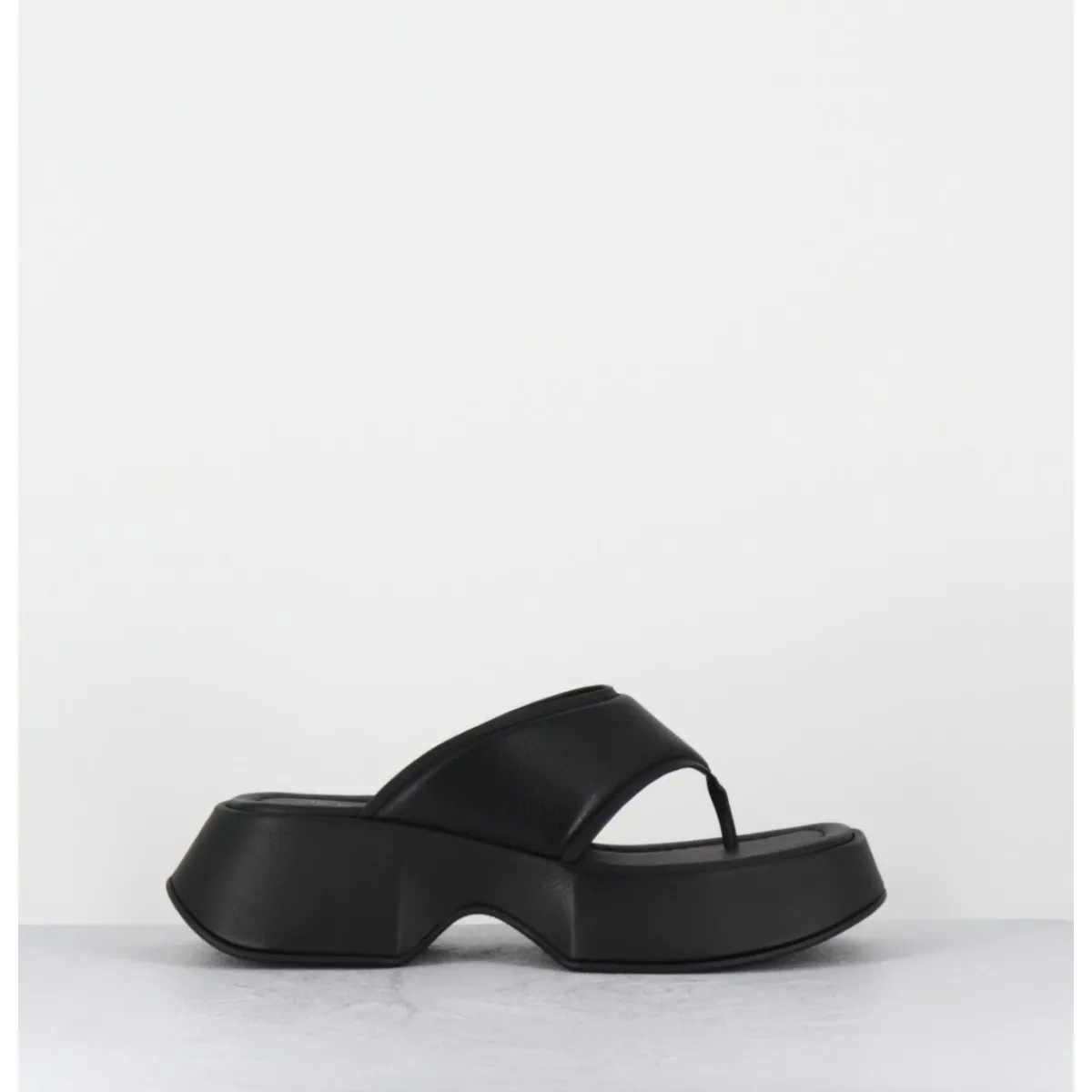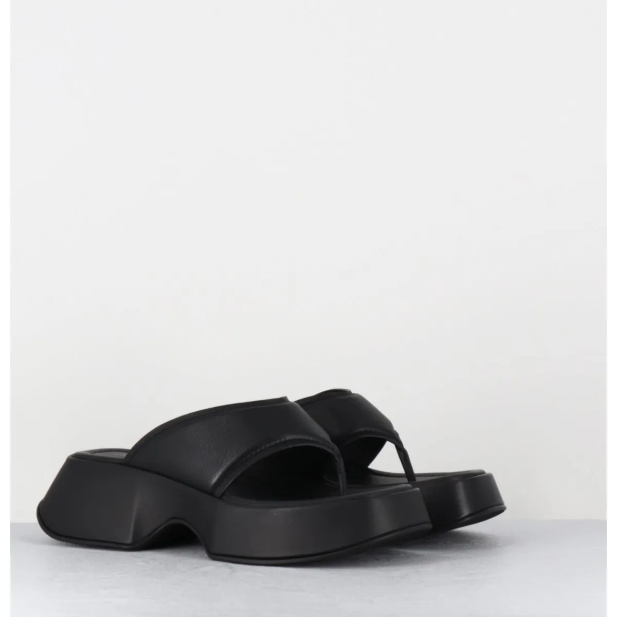 Mules – tongs compensées en cuir noir, montées sur une plateforme stylisée en micro fibre ultra légère recouverte