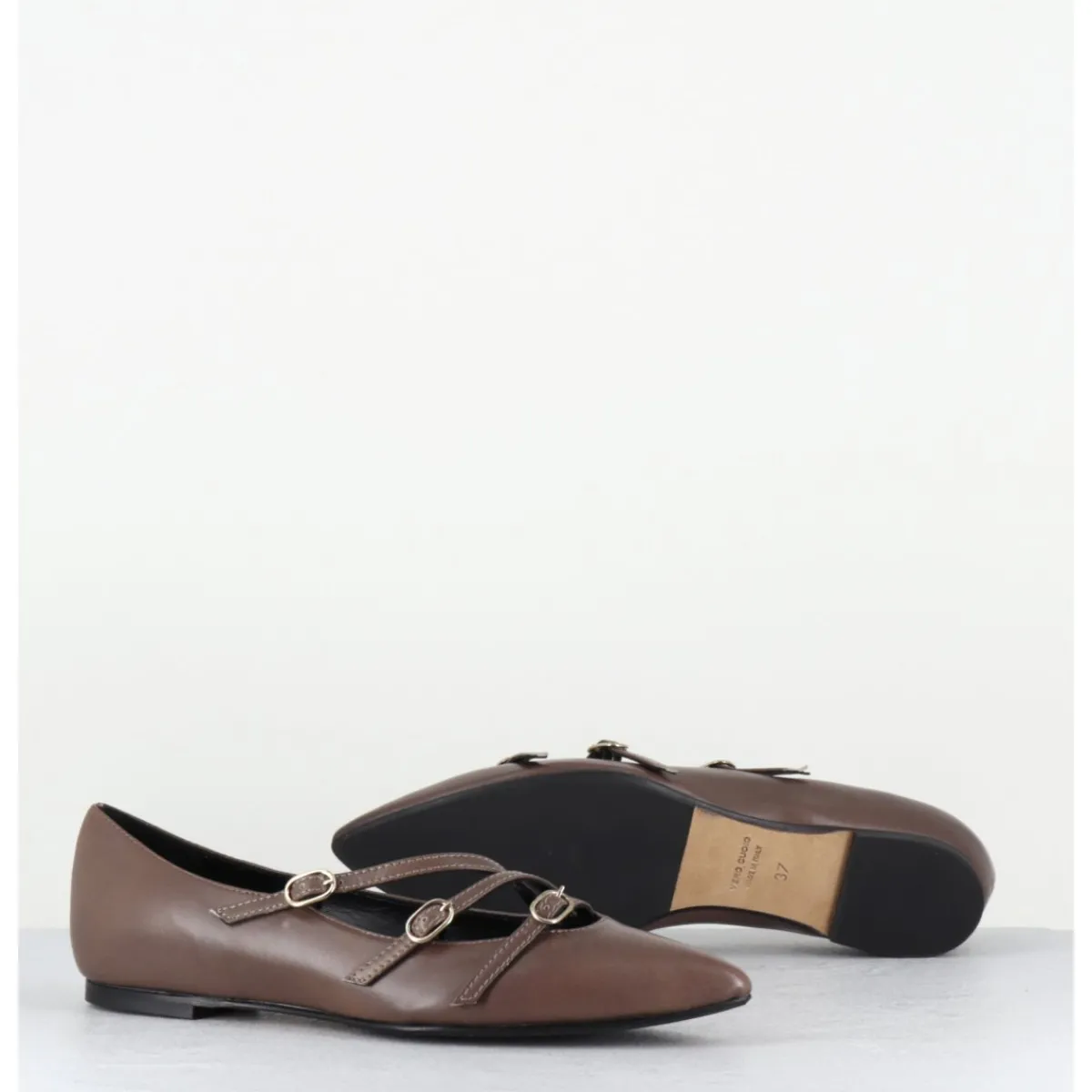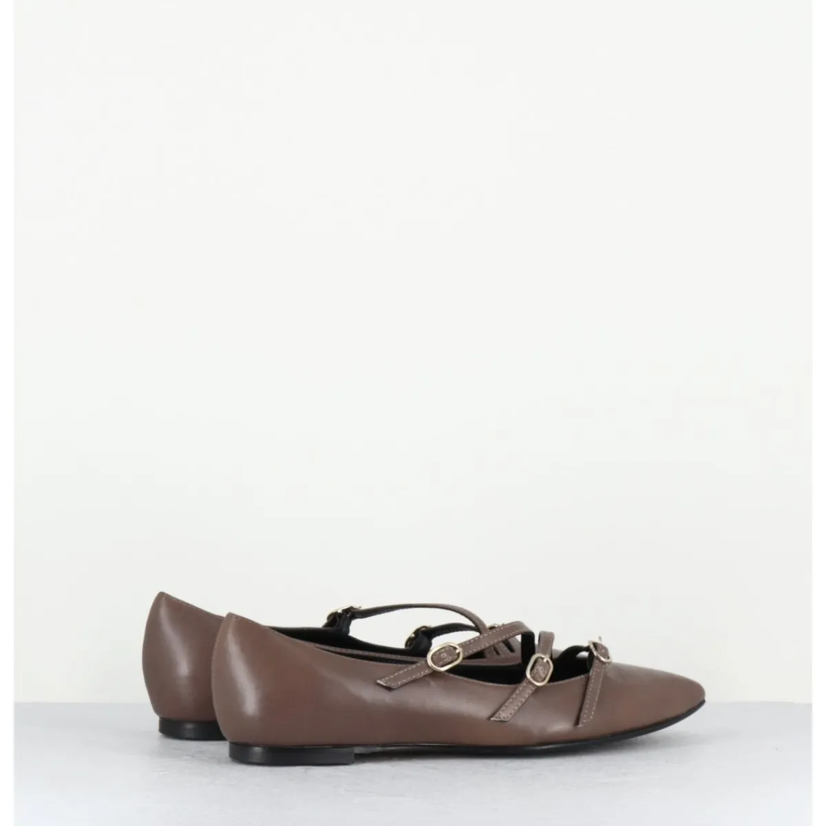 Ballerines en cuir taupe, multi-brides, bout pointu soft, montées sur une semelle légère