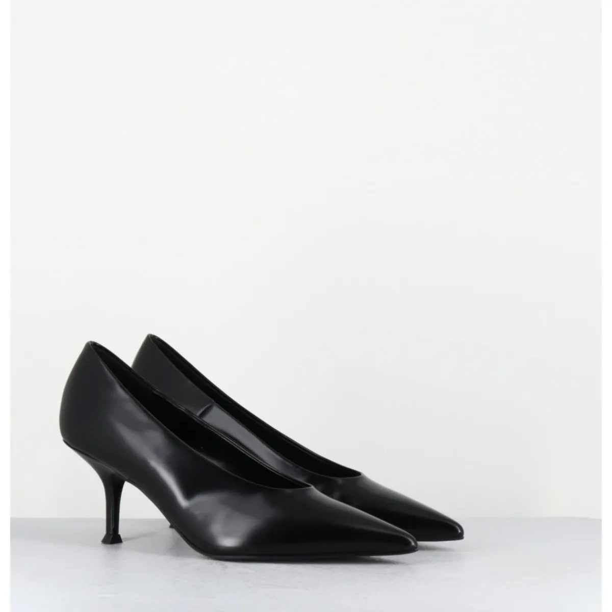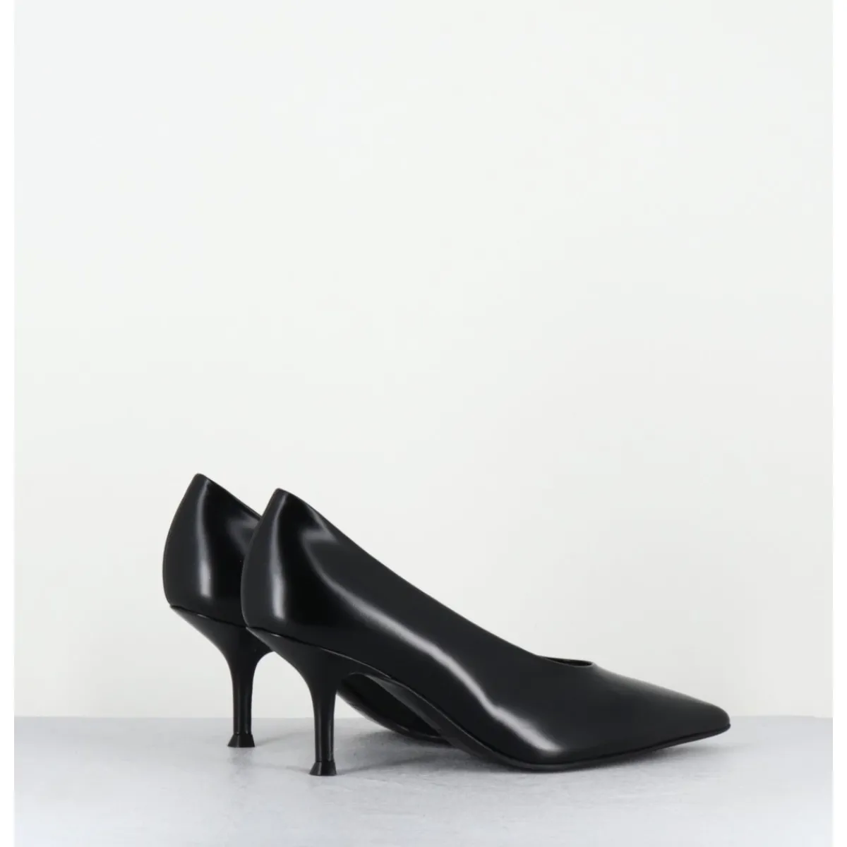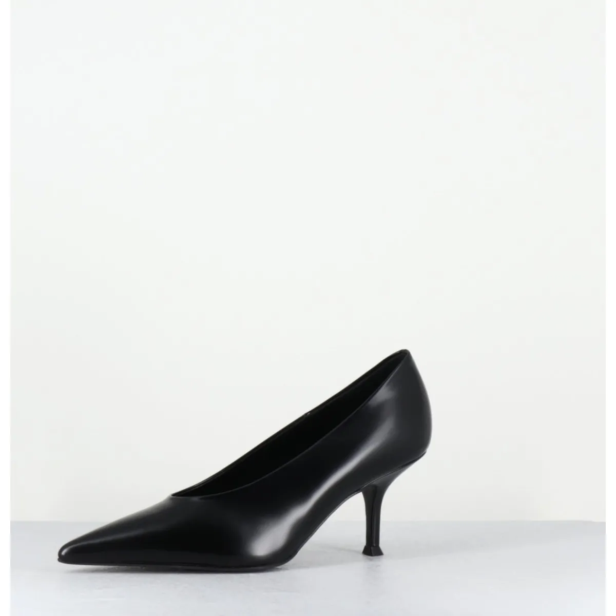 Escarpins en cuir glacé noir, ligne pure à bout pointu, petit talon fin