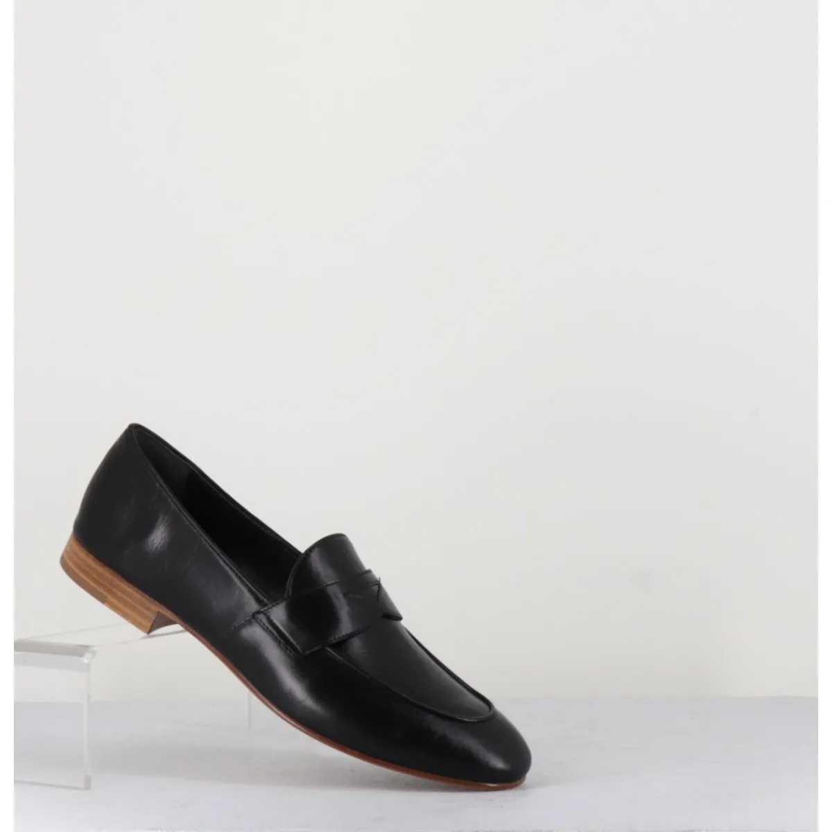 Mocassins plats en cuir noir extrêmement souple et bout en amande. Chic & confortable !