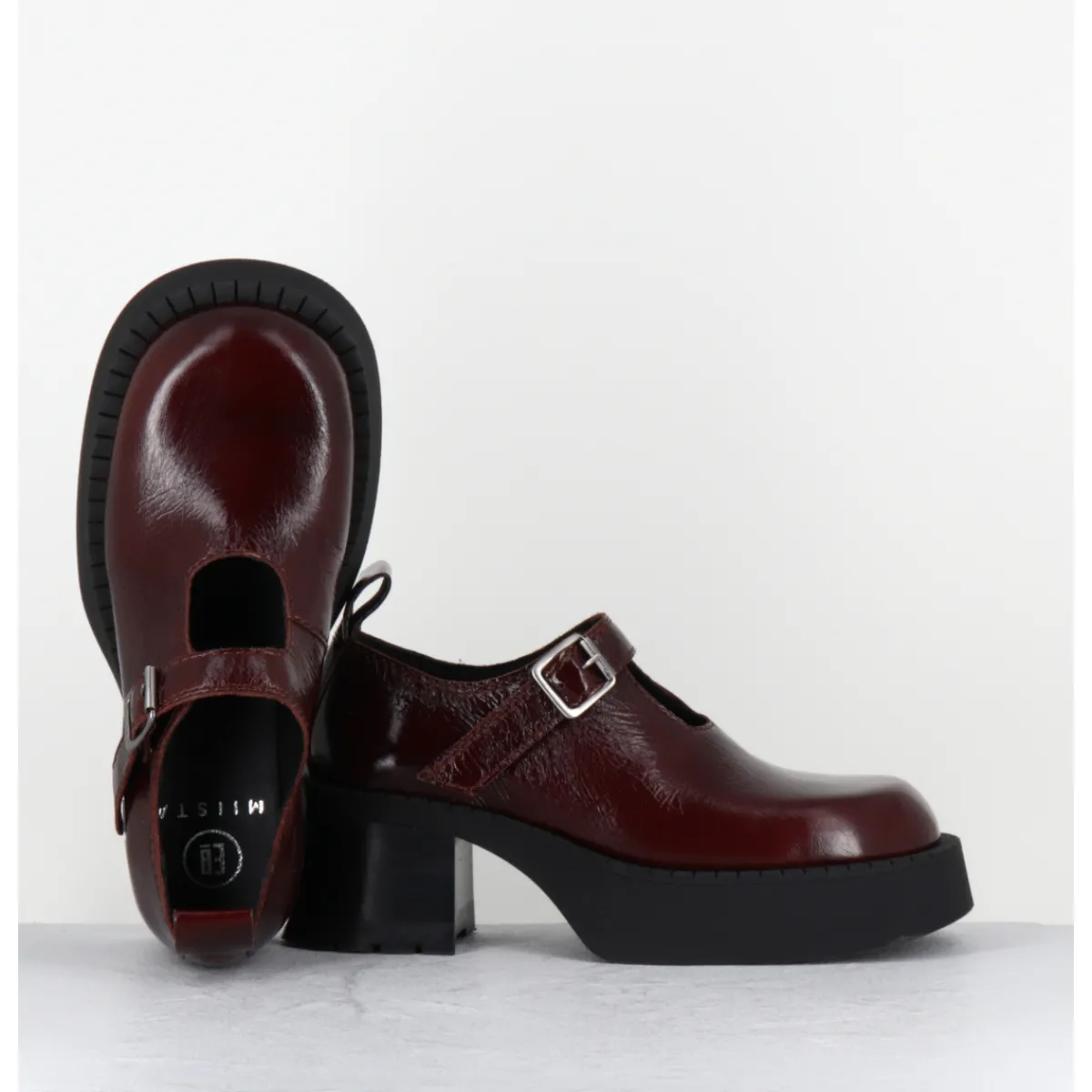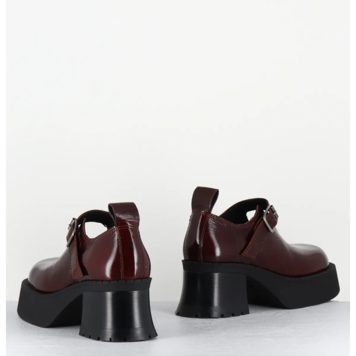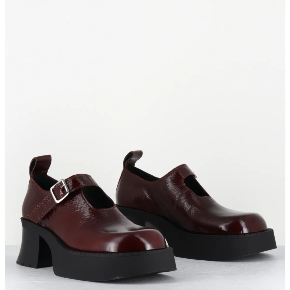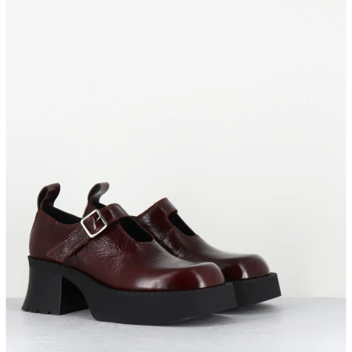 Chaussures à plateforme en naplak marron, forme large esprit années 90 avec bride à boucle réglable