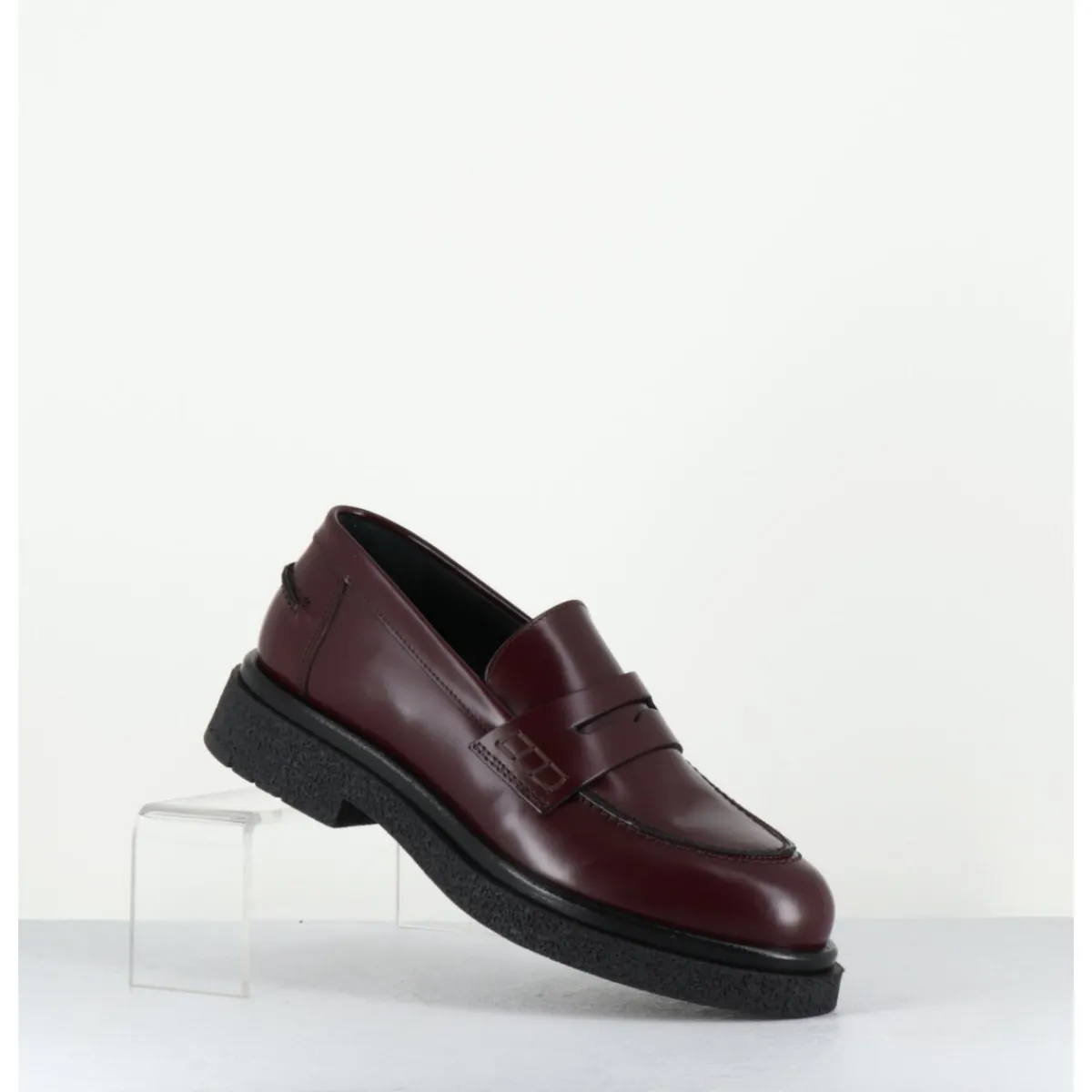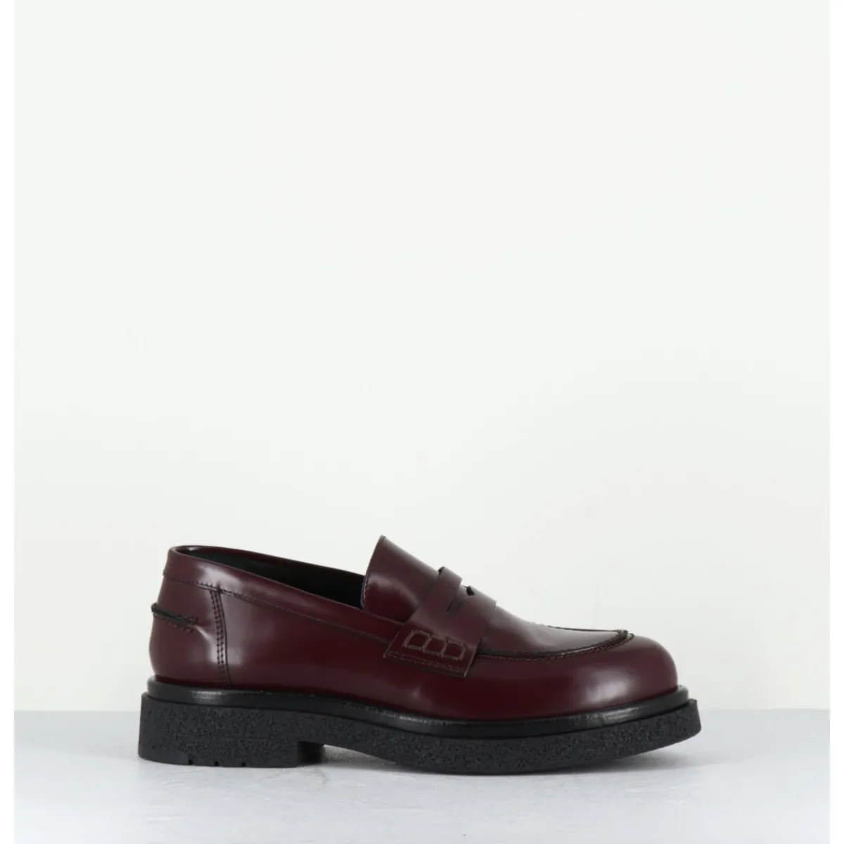Mocassins en cuir glacé bordeaux, semelle épaisse en gomme légère