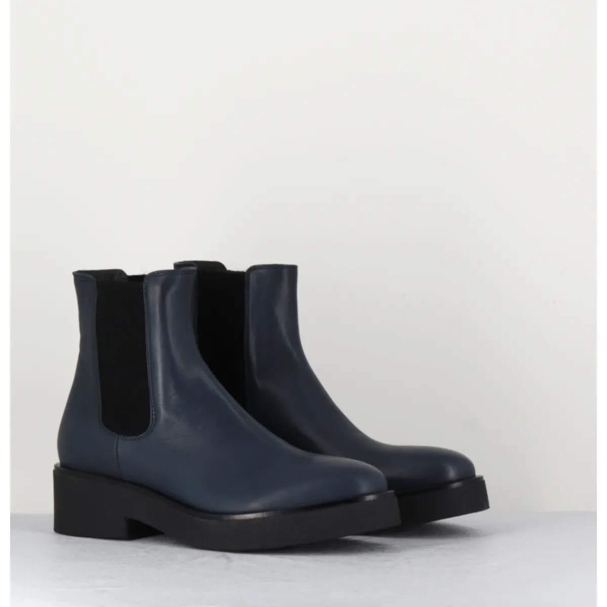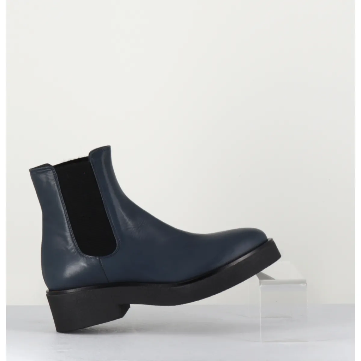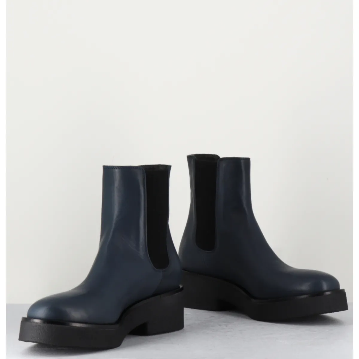 Boots chelsea en cuir bleu, montées sur une semelle épaisse en crêpe noir qui vous assurera adhérence et confort.