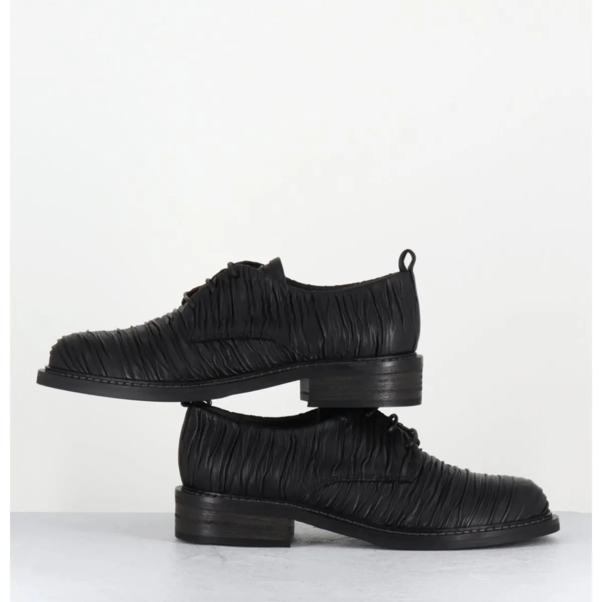 Derbies à lacets en cuir plissé noir