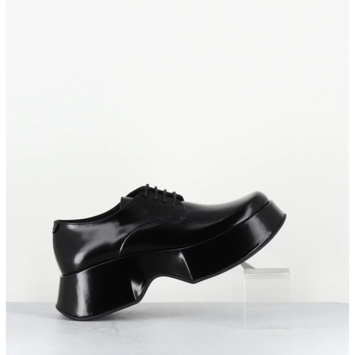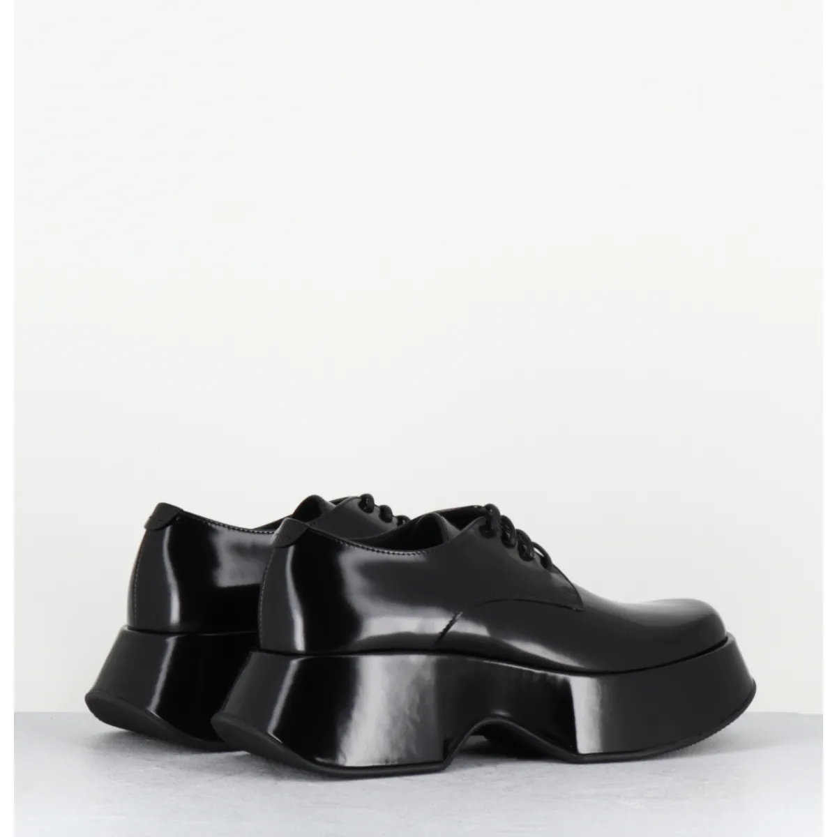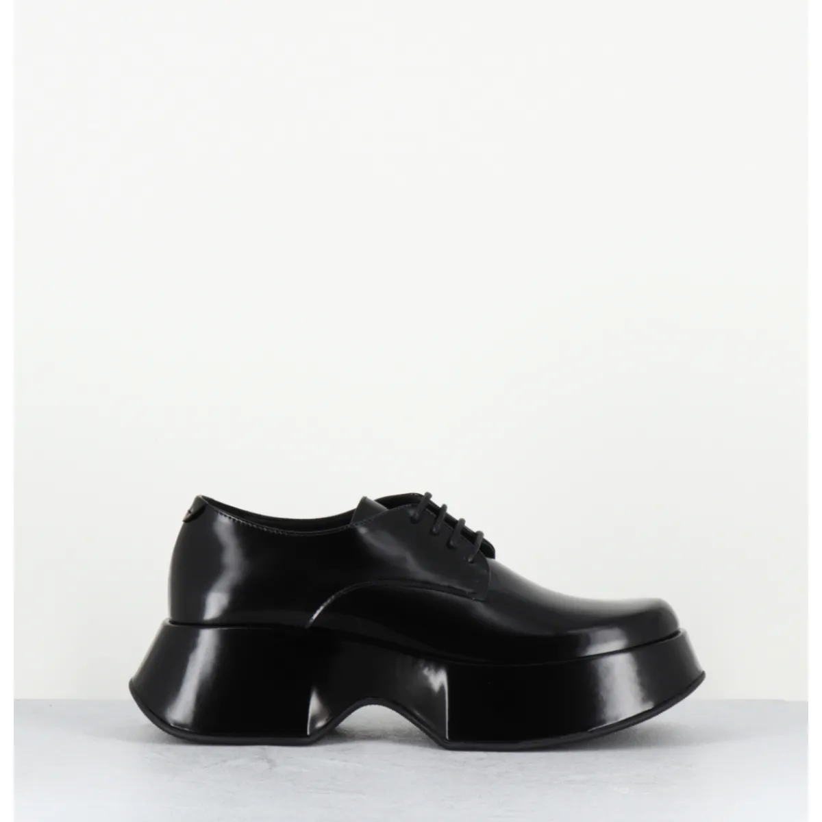 Derbies à lacets cuir noir glacé, montées sur une plateforme bloc légère