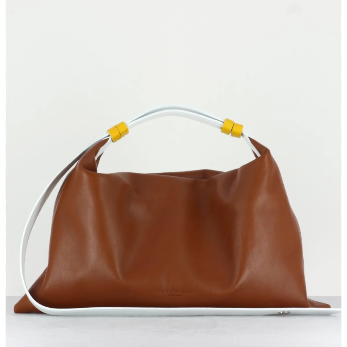 Le Puffin bag est un sac en cuir ultra souple camel issu de la collection Spring-Summer du label Simon Miller. Forme rectangulaire maniable, il présente une anse en cuir blanc ajustable par un système de pression sur plusieurs niveaux. Peut se porter à l’épaule, en bandoulière ou sous le bras « style baguette »! Logo de le marque discret et fermeture magnétique invisible.