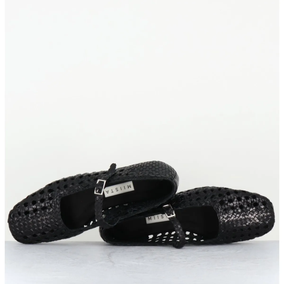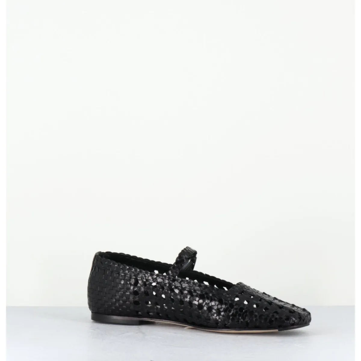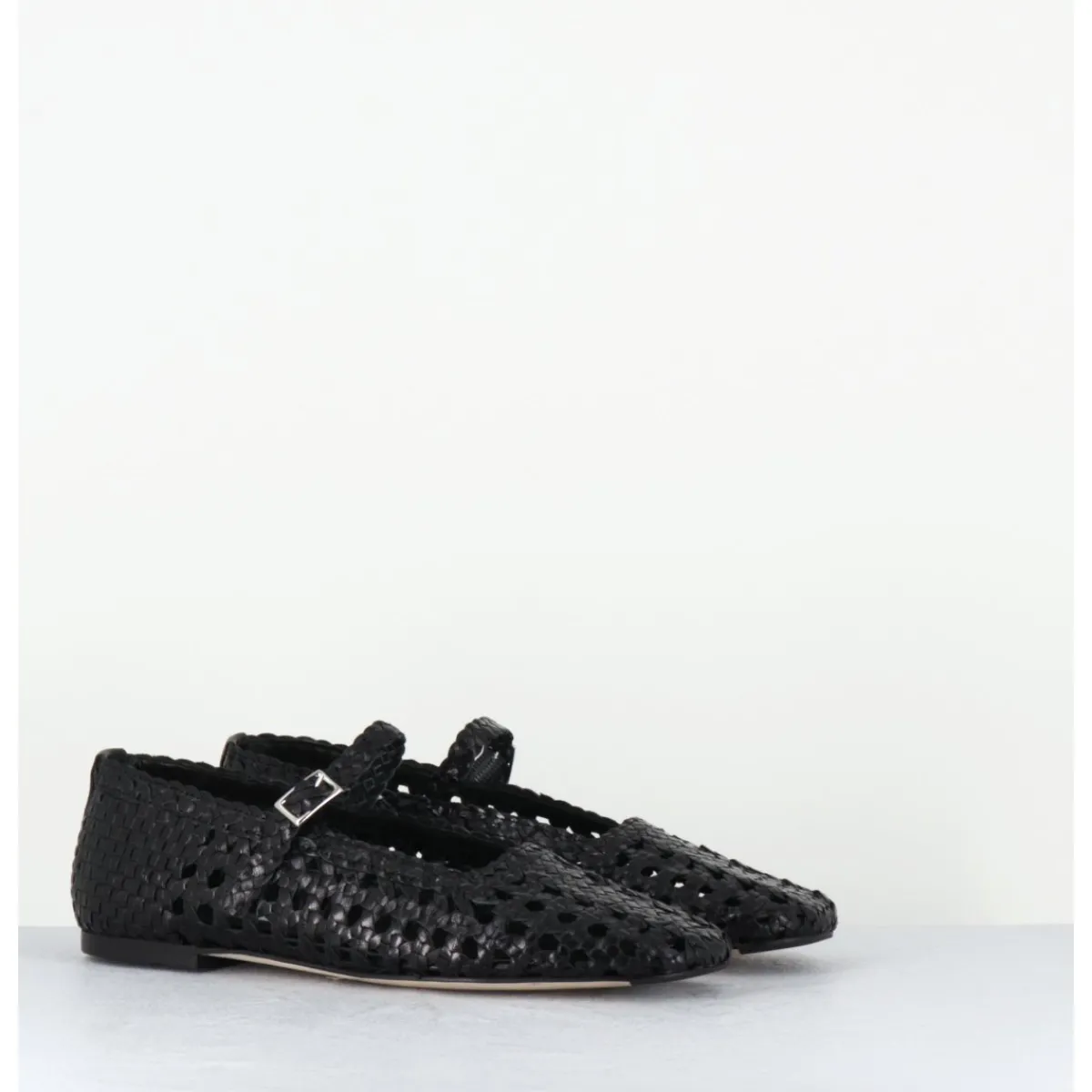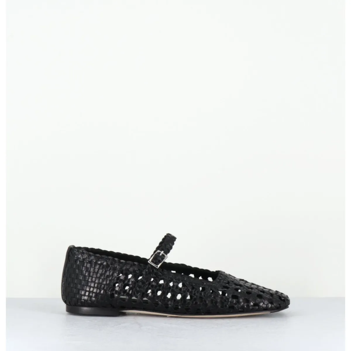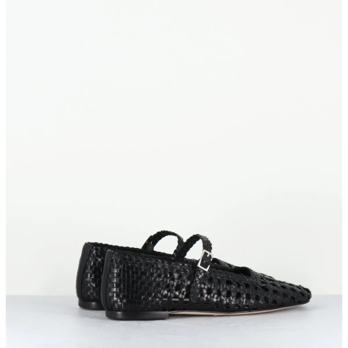 Ballerines en cuir tressé noir avec bride réglable esprit Mary-Jane, bout légèrement carré, semelle intérieure à mémoire de forme pour plus de confort