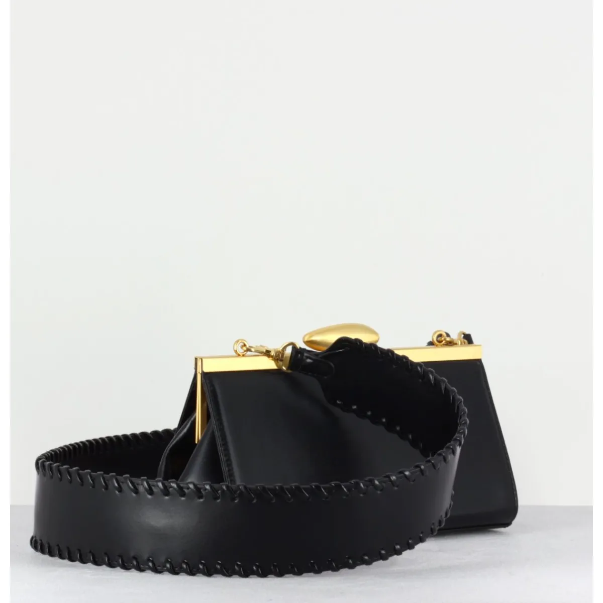 Petit sac sculptural en cuir noir au design rectangulaire, intérieur entièrement doublé qui possède assez d’espace pour transporter le nécessaire sans se sentir encombré! Se porte en bandoulière ou en élégante pochette sous le bras. Fabriqué à la main en Corée dans les Ateliers de la Maison Reike Nen.