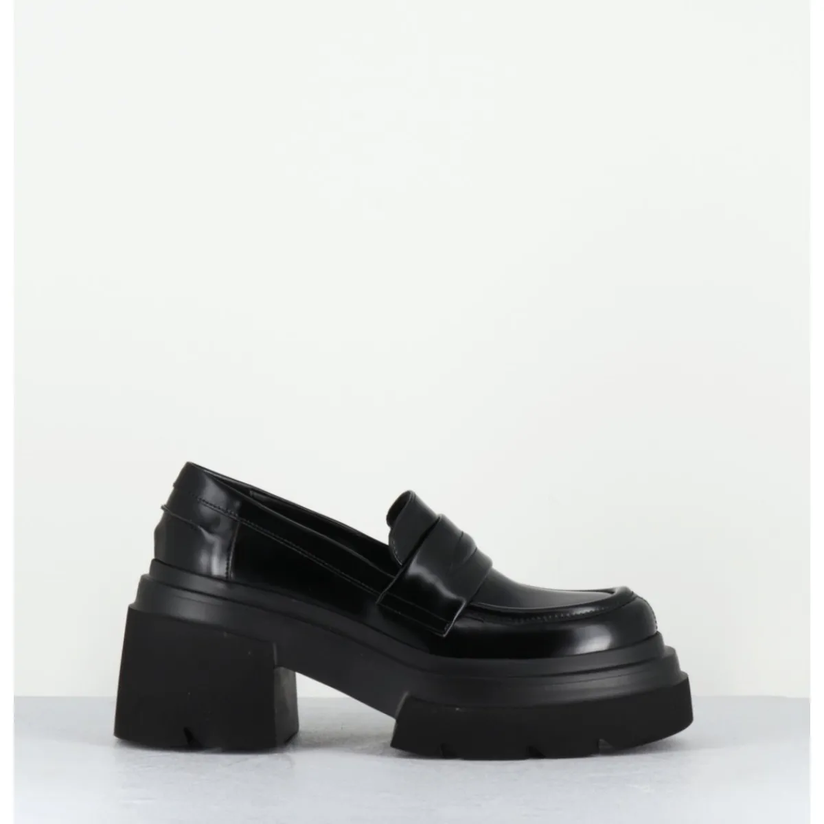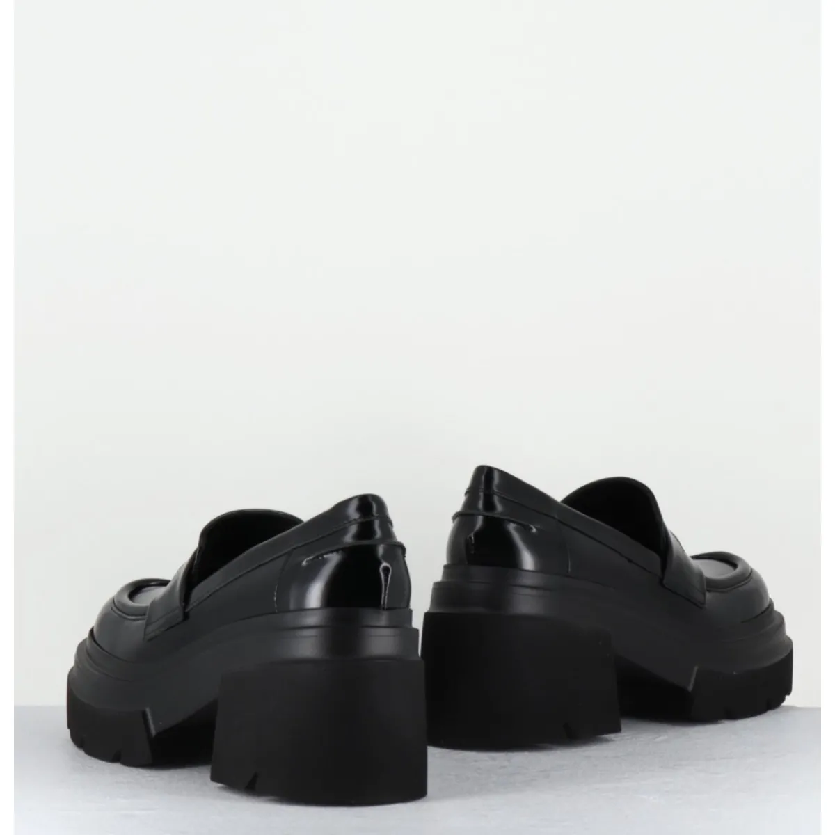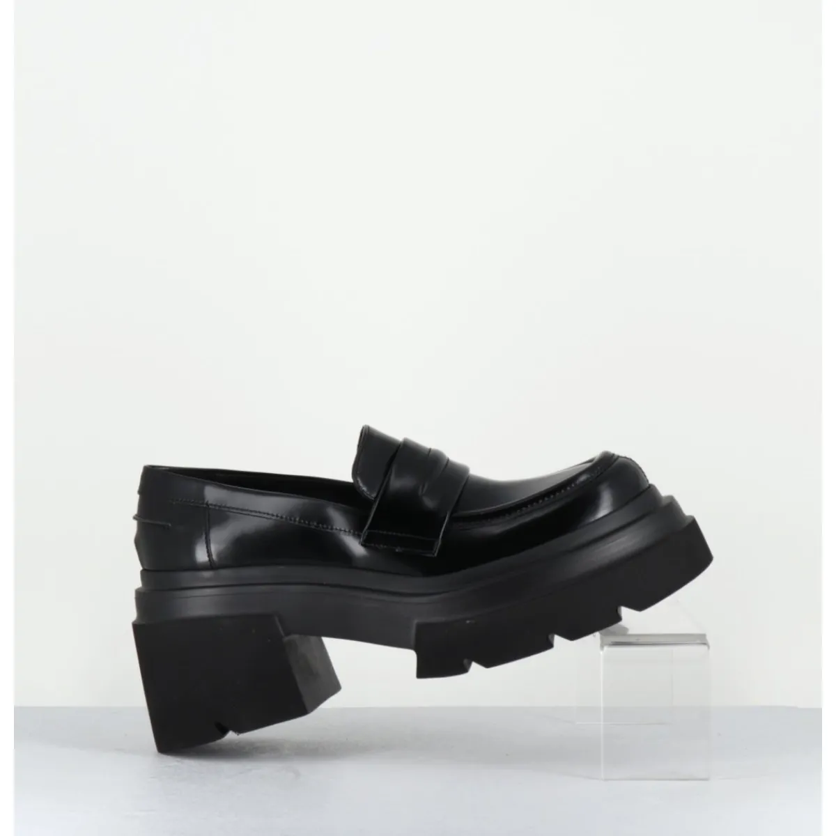 Mocassins effet glacé noir, bout arrondi, montées sur une semelle chunky ultra légère esprit années 90