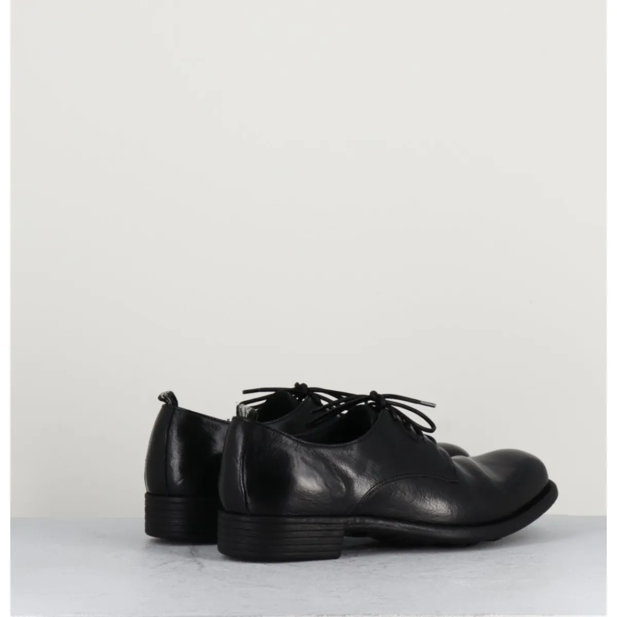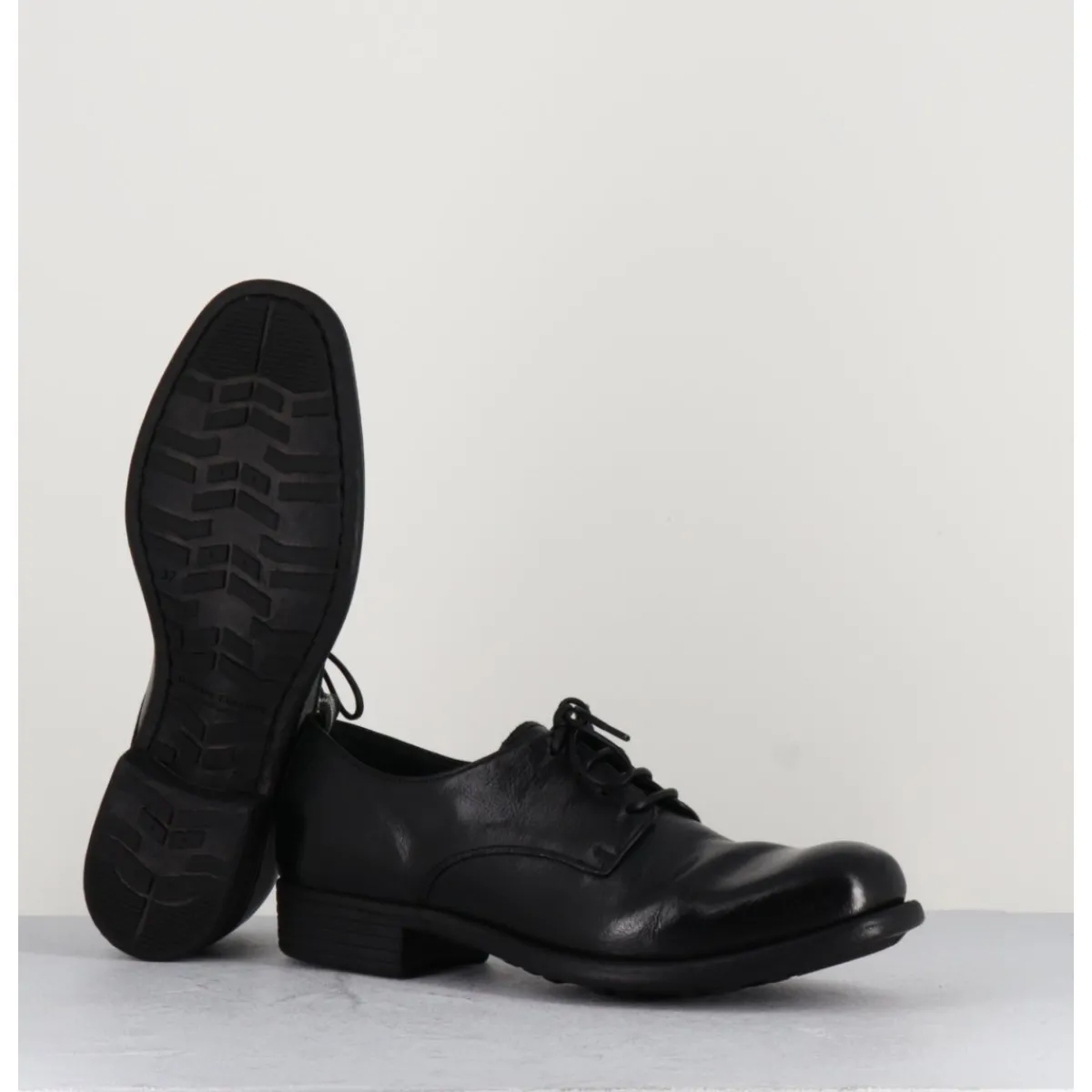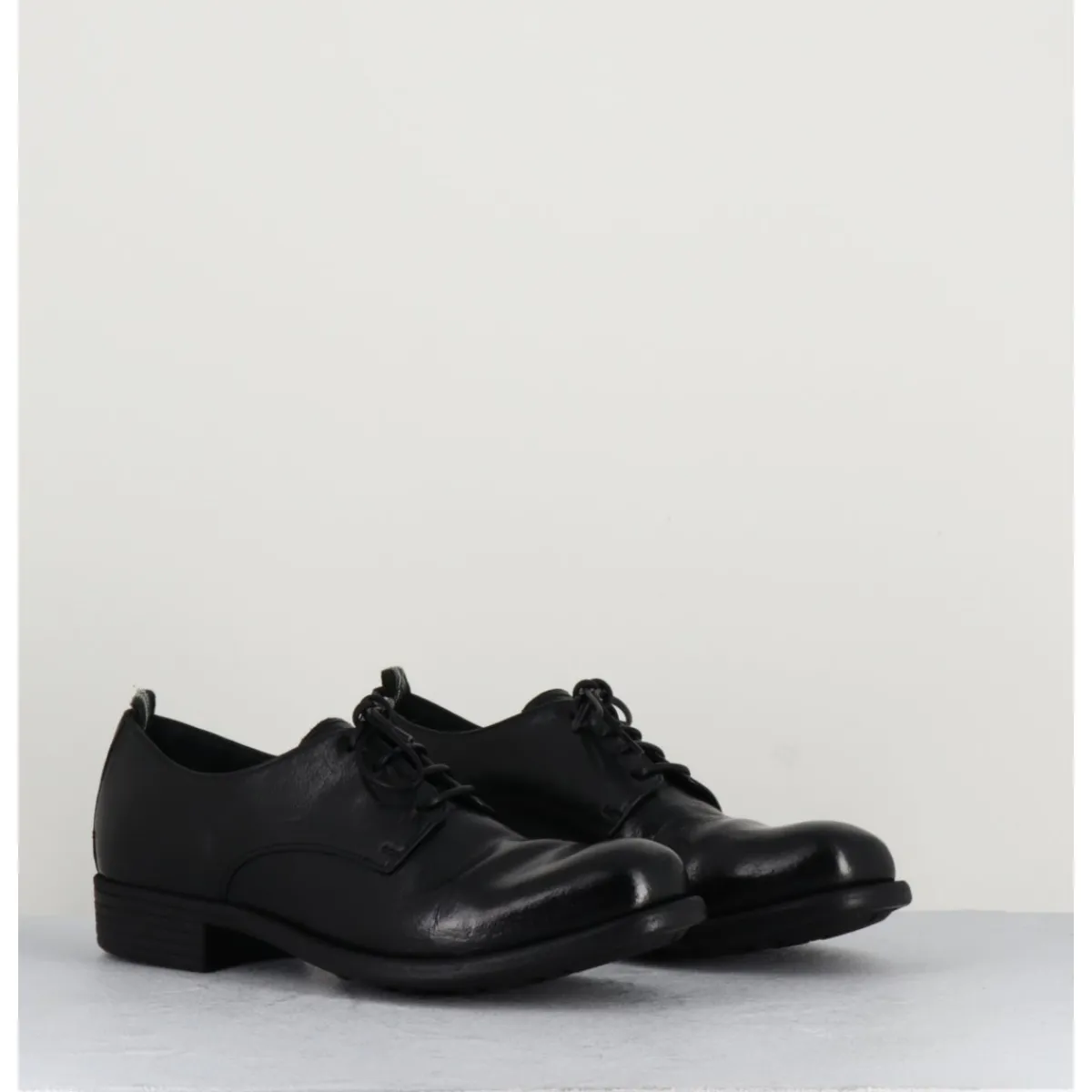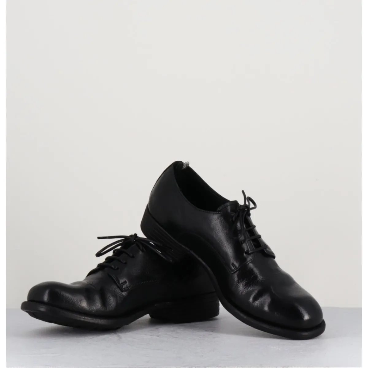 Derbies à lacets en cuir noir, construction Sacchetto extrêmement souple, avec insert de gomme, cousu main.
