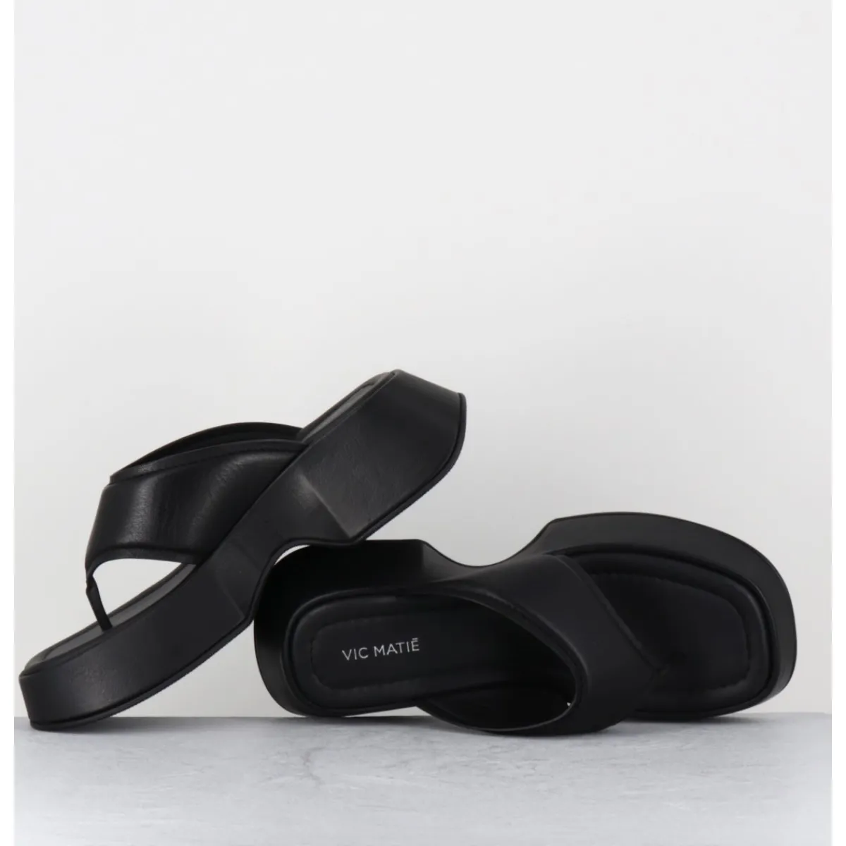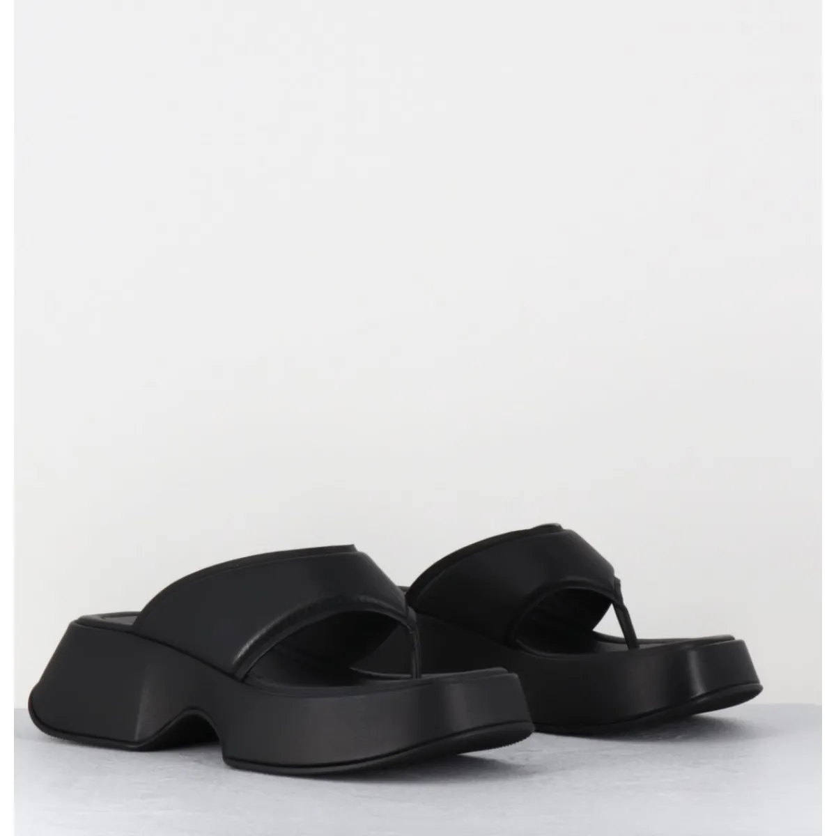 Mules – tongs compensées en cuir noir, montées sur une plateforme stylisée en micro fibre ultra légère recouverte