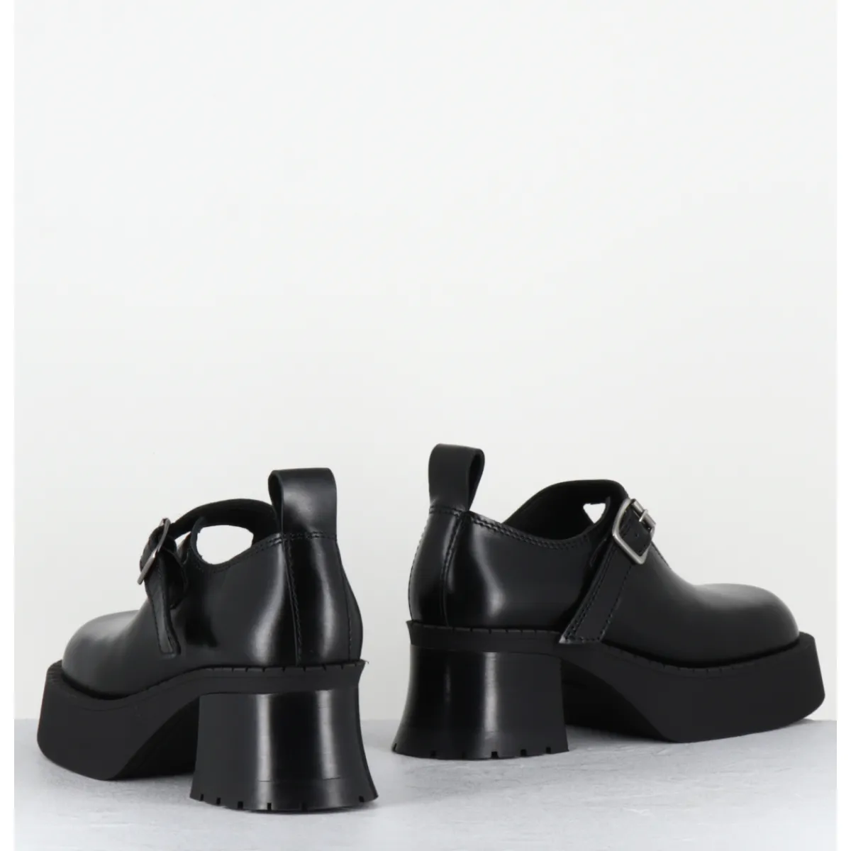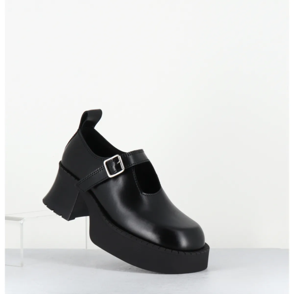 Chaussures à plateforme en cuir noir, forme large esprit années 90 avec bride à boucle réglable