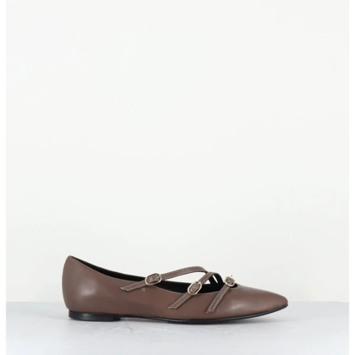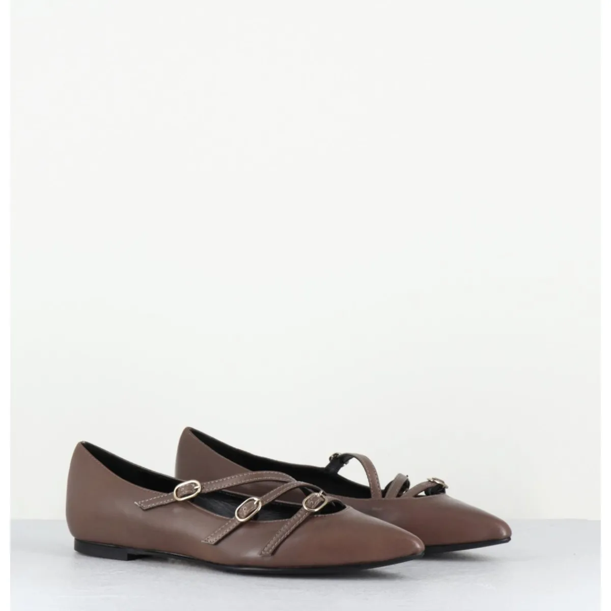 Ballerines en cuir taupe, multi-brides, bout pointu soft, montées sur une semelle légère