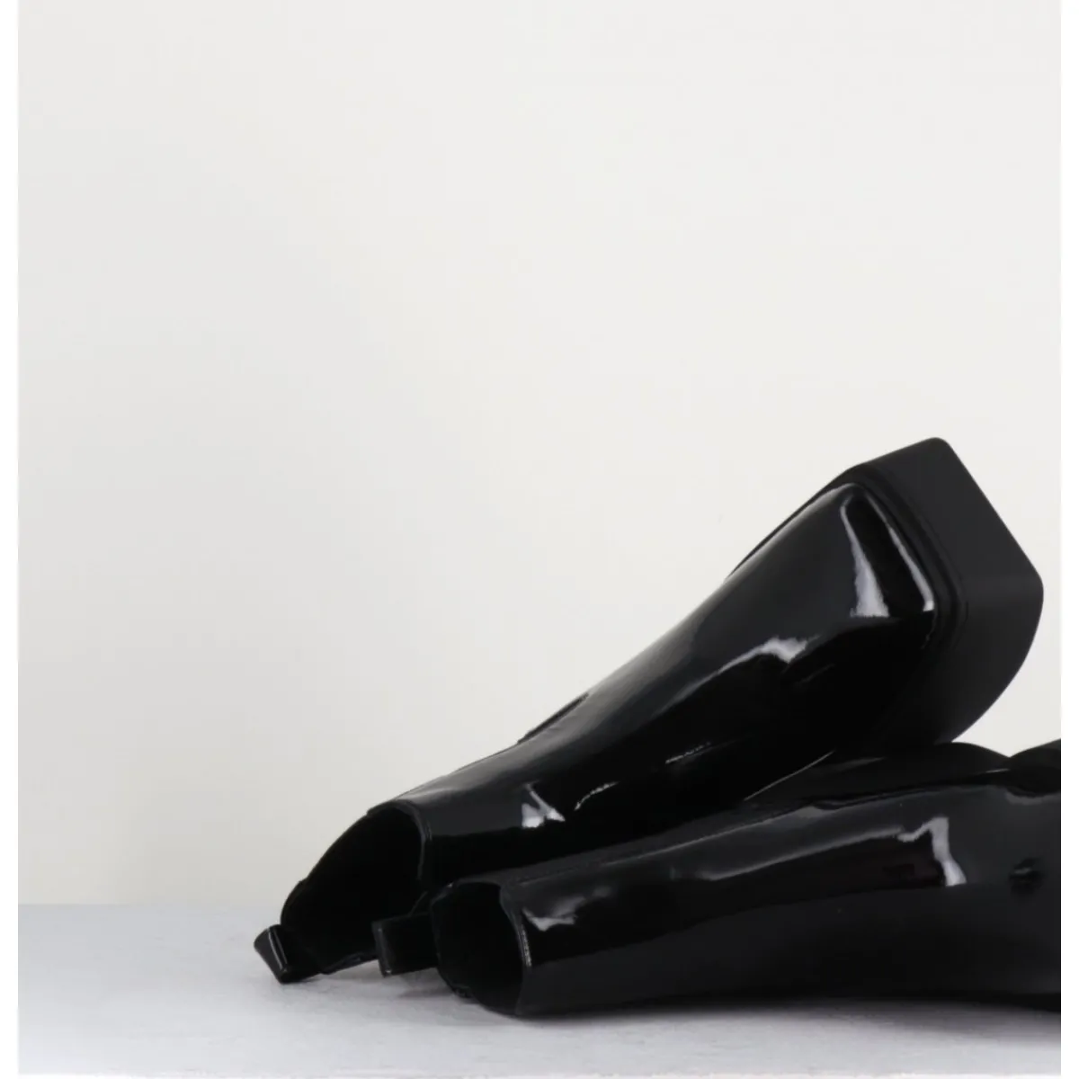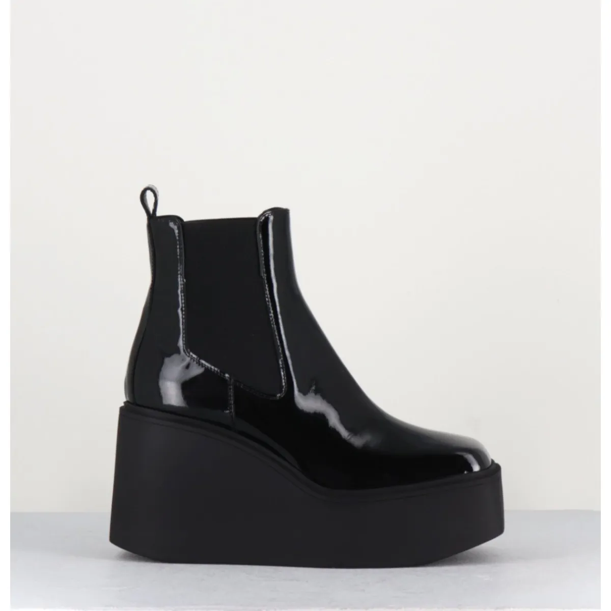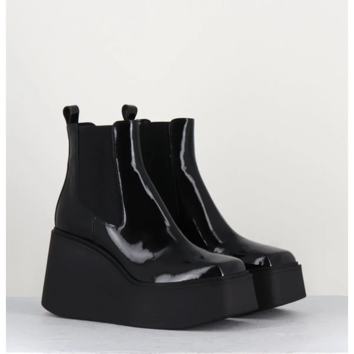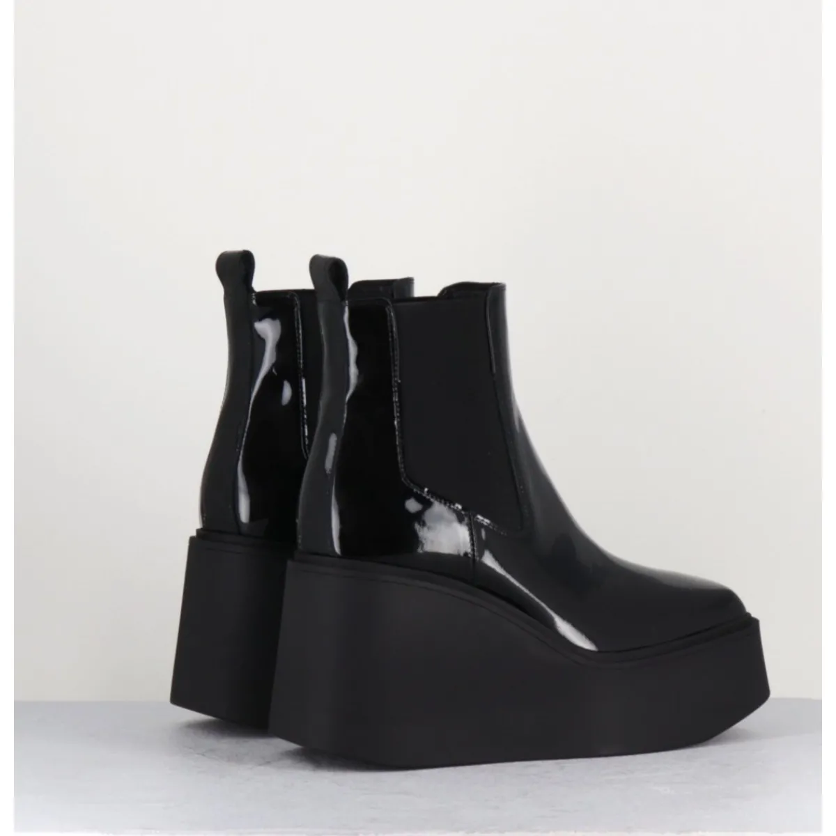 Boots à élastique chelsea en cuir vernis noir bout carré, esprit années 90, montées sur une plateforme structurée en gomme noire