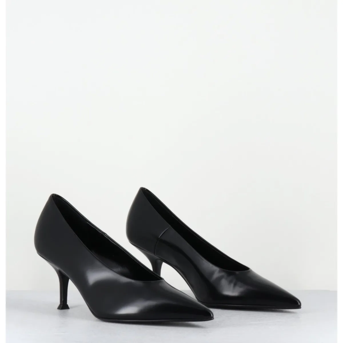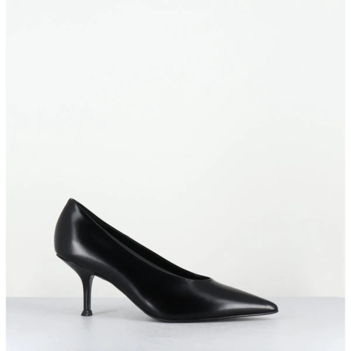 Escarpins en cuir glacé noir, ligne pure à bout pointu, petit talon fin