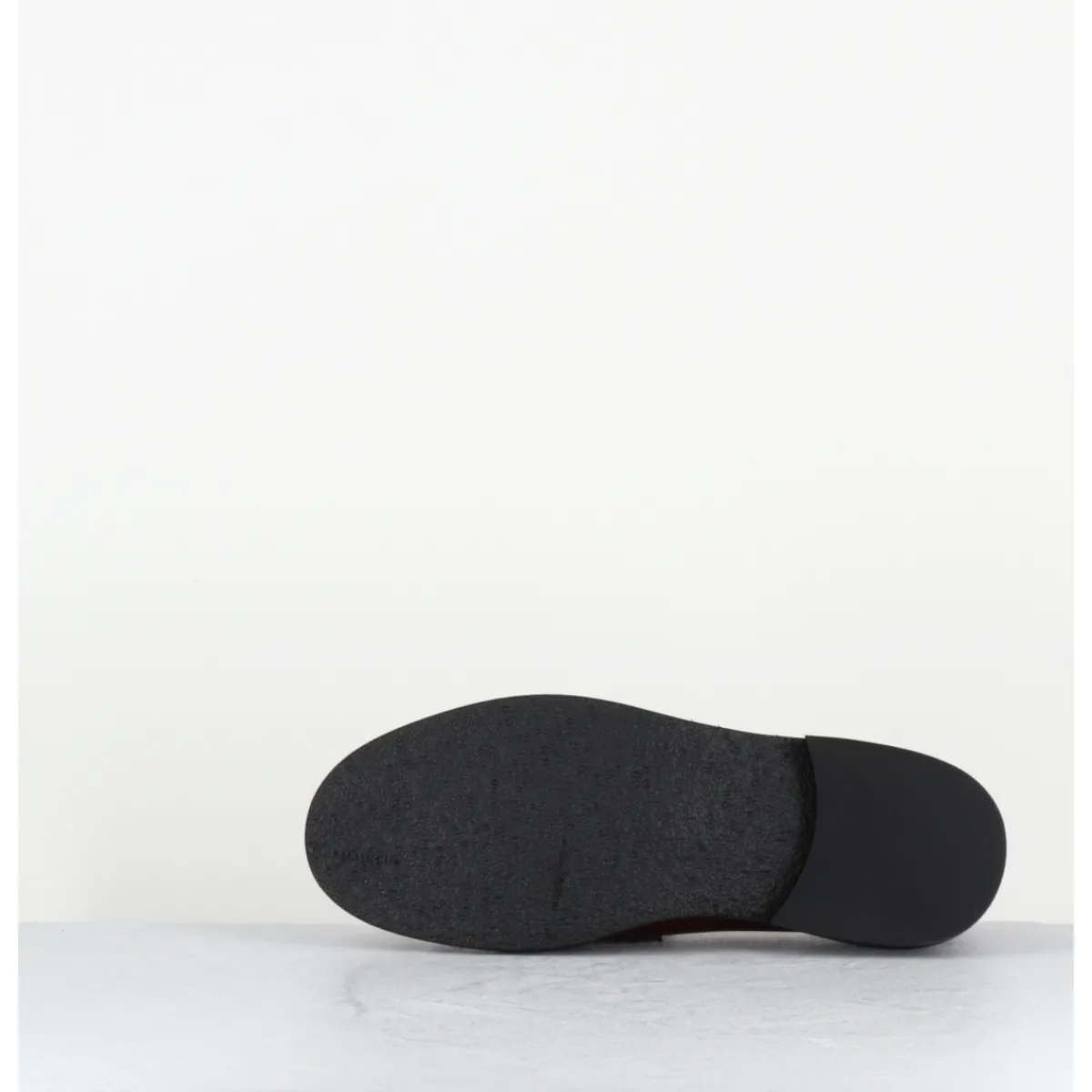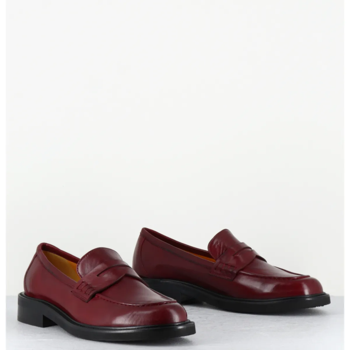 Mocassins plats en cuir bordeaux extrêmement souple, ligne pure montées sur une semelle en gomme ultra légère