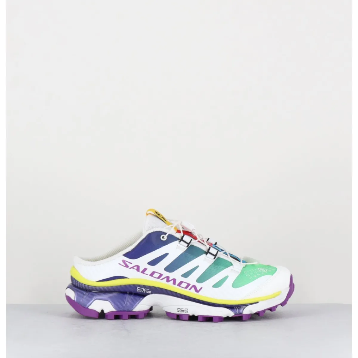 La XT-4 Mule MM6 Maison Margiela transforme la célèbre basket XT-4 OG en mule à talon ouvert pour l’été. Une réinterprétation subtile qui insuffle de l’éclat, une palette de couleurs ludique et une adaptabilité toutes saisons d’une icône héritée des sentiers techniques et de l’essence de l’ADN de la marque en matière de design.