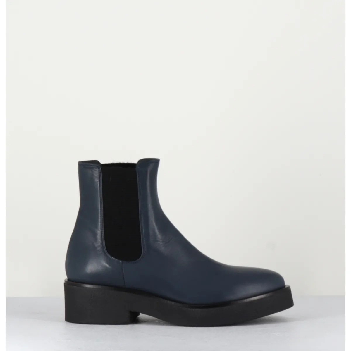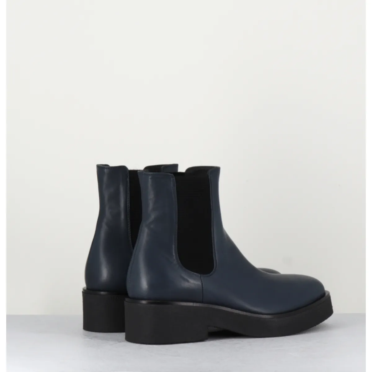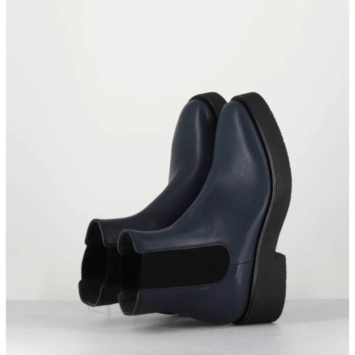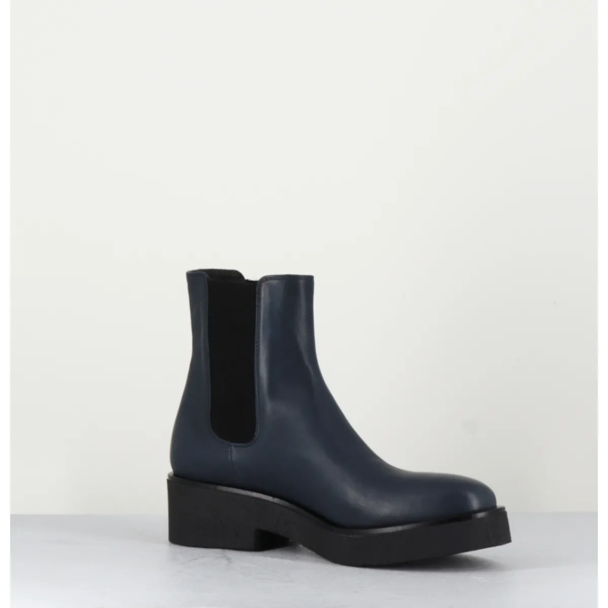 Boots chelsea en cuir bleu, montées sur une semelle épaisse en crêpe noir qui vous assurera adhérence et confort.