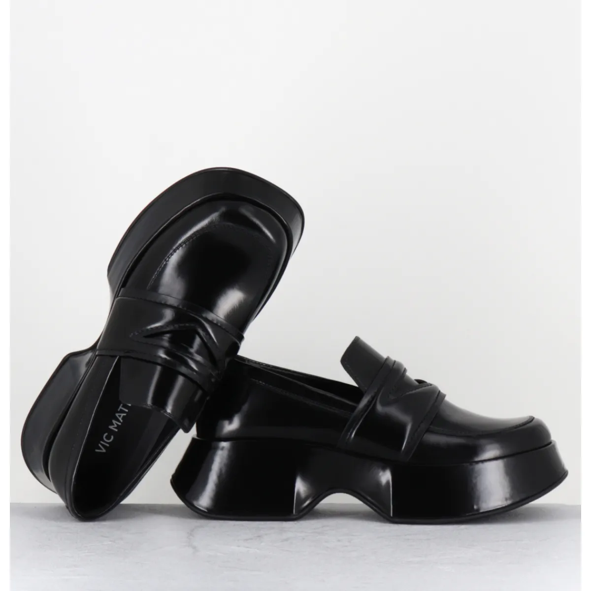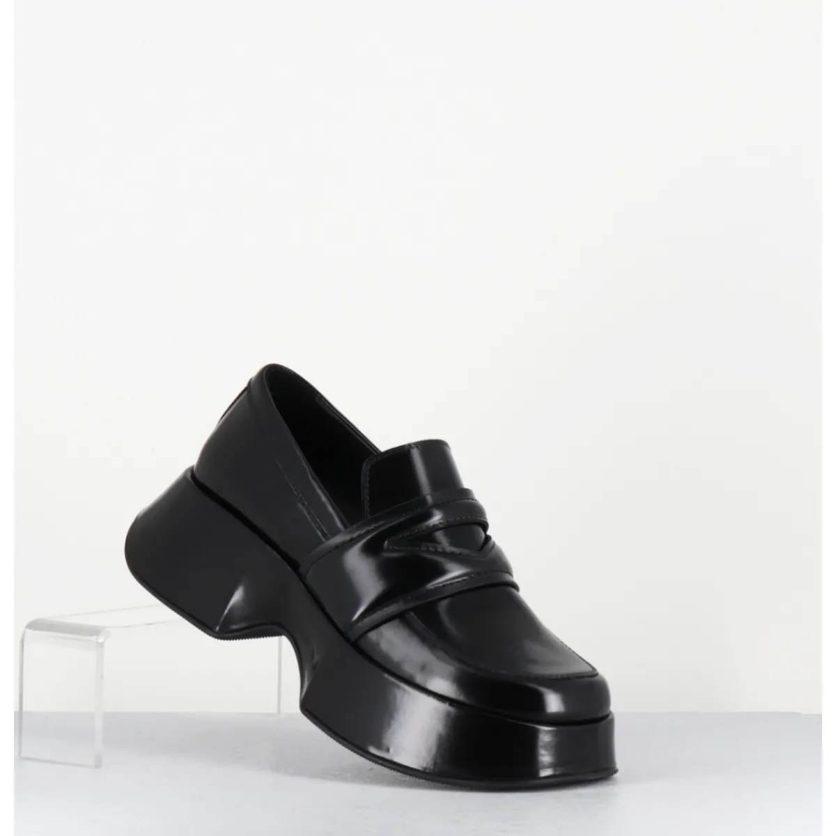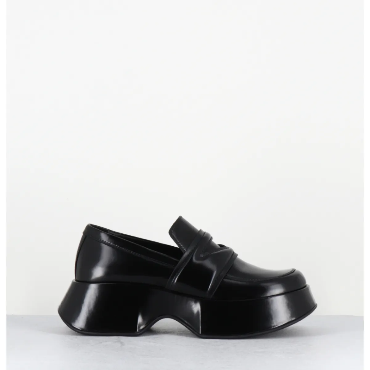Mocassins cuir noir glacé, montées sur une plateforme bloc légère